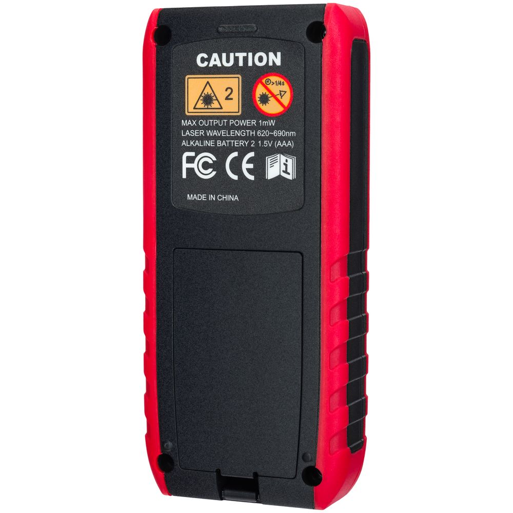 Прибор легко удерживается одной рукой, эргономично расположенные кнопки облегчают управление. Питание устройства осуществляется от 2 батареек ААА, один комплект обеспечивает более 5000 измерений. Функция автоотключения помогает экономить энергию, а индикатор низкого заряда батареи подскажет, когда необходимо заменить источники питания.Лазерная рулетка с ручным (однократный замер) и автоматическим (непрерывное сканирование) режимами работы.- Функция измерения длины: диапазон измерения длины — 0,05-40 м, единицы измерения длины — метры, футы, дюймы, точность измерений — ±2 мм