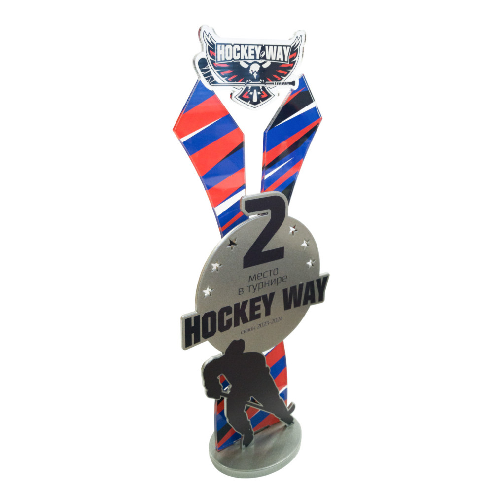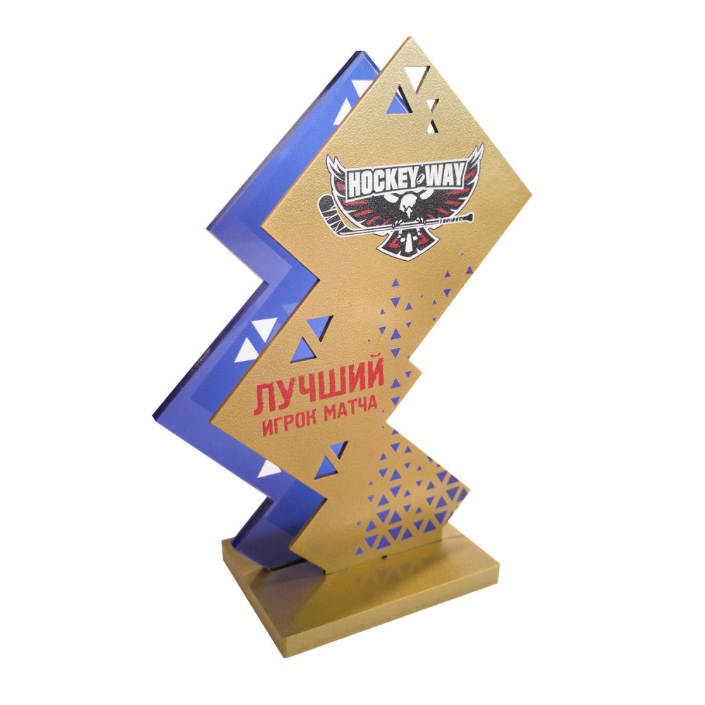 Металлический слой приза добавляет надежность и стабильность, а акрил с УФ-печатью дарит яркие цвета и прозрачность. Эта комбинация создает визуальный эффект глубины и игры света, делая награду по-настоящему уникальной.