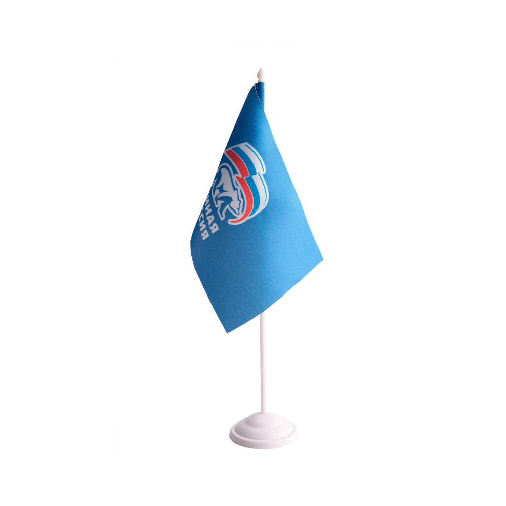 Флажок крепится на специальную настольную подставку с одним или несколькими штоками. Она может быть пластиковой или металлической по вашему выбору. Флагшток заказывается отдельно.