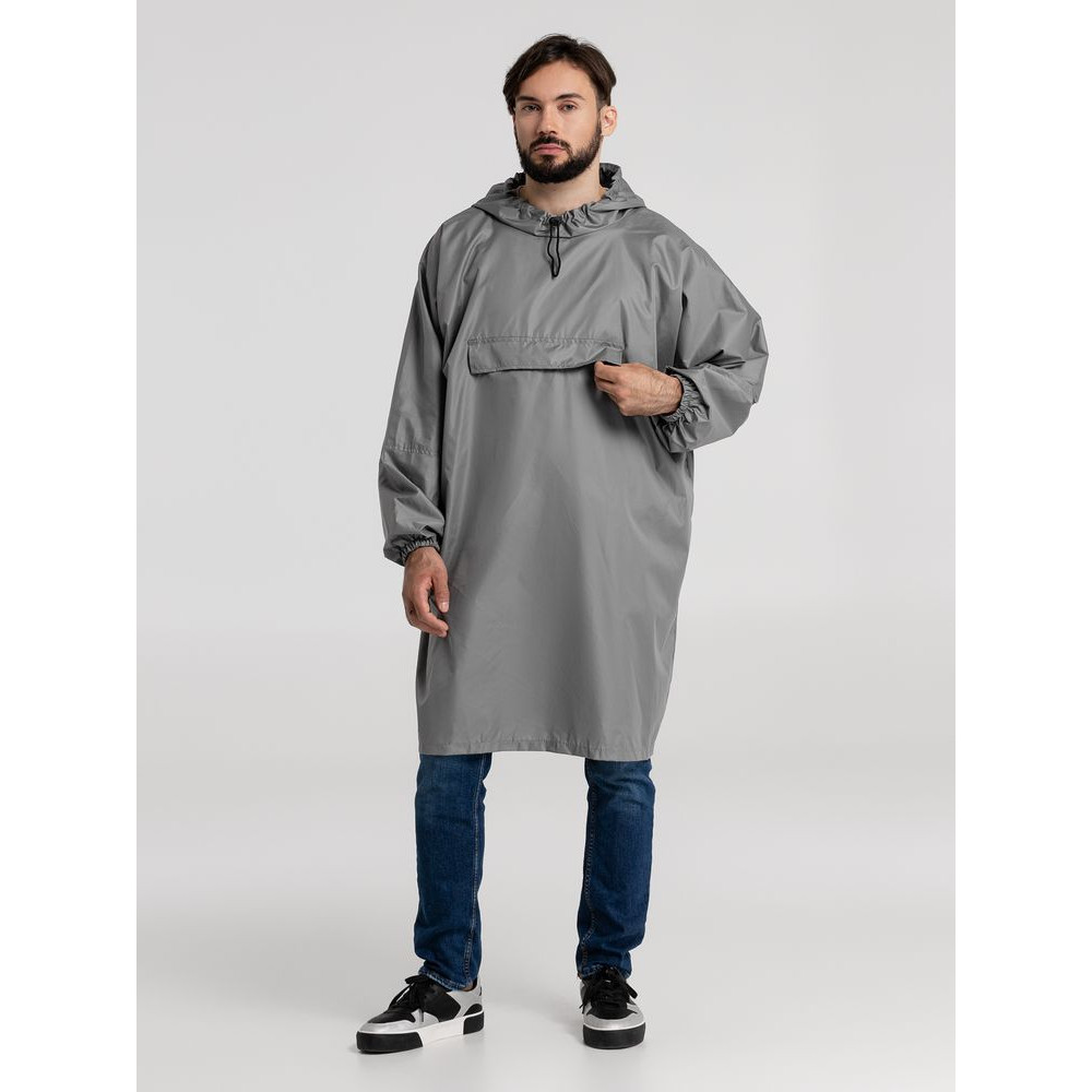 Дождевик-анорак с капюшоном и карманом на молнии спереди. Выполнен из ткани дюспо с матовой поверхностью — легкой, мягкой на ощупь, но устойчивой к повреждениям. Она не шелестит и практически не мнется. Благодаря пропитке дюспо обладает отличными водоотталкивающими и ветрозащитными свойствами.