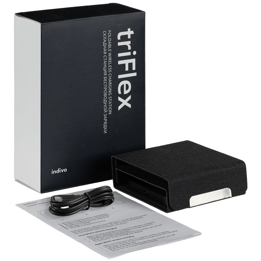 triFlex — компактное устройство беспроводной зарядки для самых мобильных и современных пользователей. Станцию легко свернуть в аккуратный бокс, поэтому ее удобно использовать не только в офисе, но и находясь в дороге — подзарядка может понадобиться где угодно.
