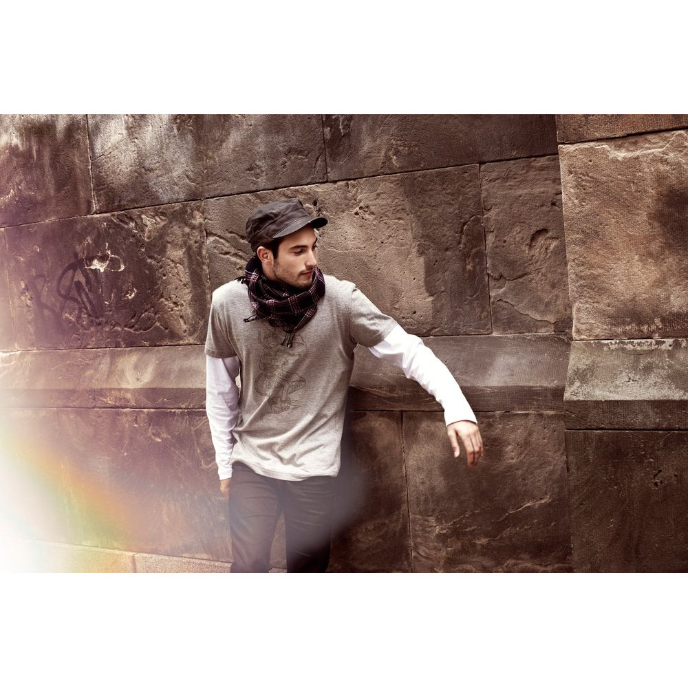 Мужская футболка с уплотненными швами на плечах и двойным швом с эластаном. Четырехслойная резинка на воротнике предохраняет его от растяжения.