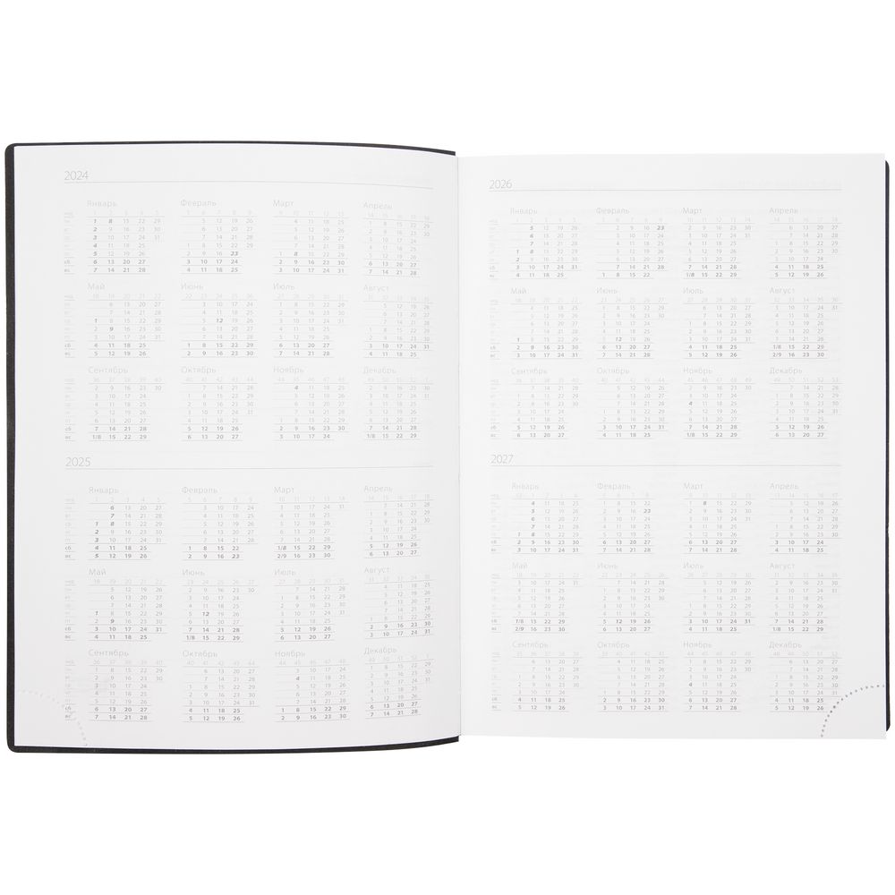 Ежедневник с гибкой обложкой выполнен из материала Brand, черный АА, и дополнен резинкой шириной 1 см с металлическим шильдом, капталом, ляссе черного цвета.
