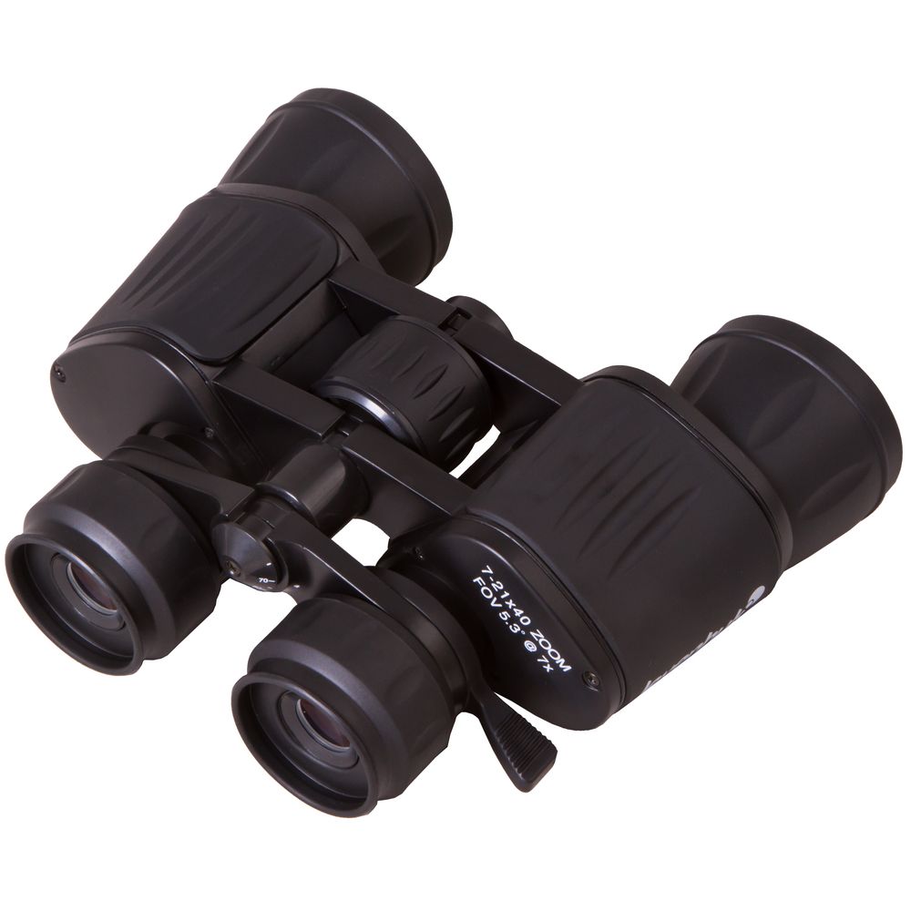 Модель с переменной кратностью: увеличение варьируется от 7x до 21x, поэтому бинокль подходит для изучения объектов на разном расстоянии. Оптическая система с призмами Порро и полное просветляющее покрытие на линзах существенно повышают качество картинки.