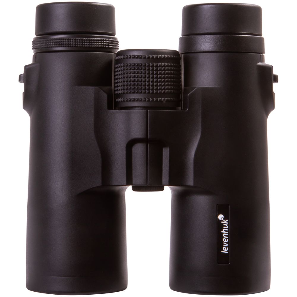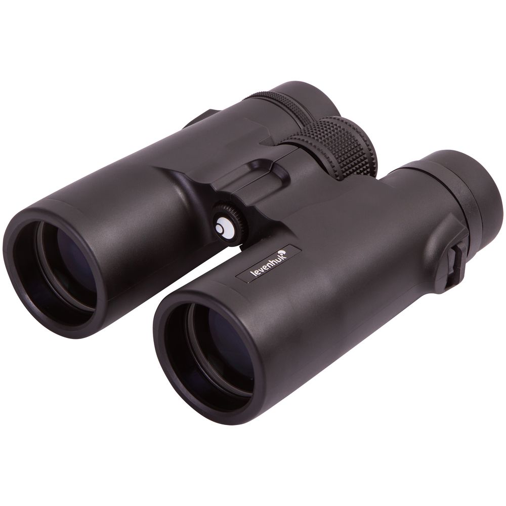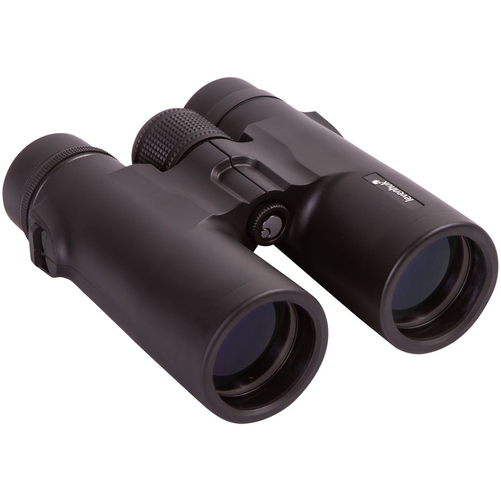 Бинокль создан на базе roof-призм и линз, сделанных из стекла BK-7. На линзы нанесено полное просветляющее покрытие — оно улучшает светопропускание и повышает качество картинки. У правого окуляра есть диоптрийная коррекция — с помощью специального кольца можно отрегулировать резкость в зависимости от особенностей зрения наблюдателя. Для фокусировки используется барабан, расположенный в центре корпуса. У окуляров увеличенный вынос зрачка и удобные поворотно-выдвижные наглазники, положение которых легко регулировать.