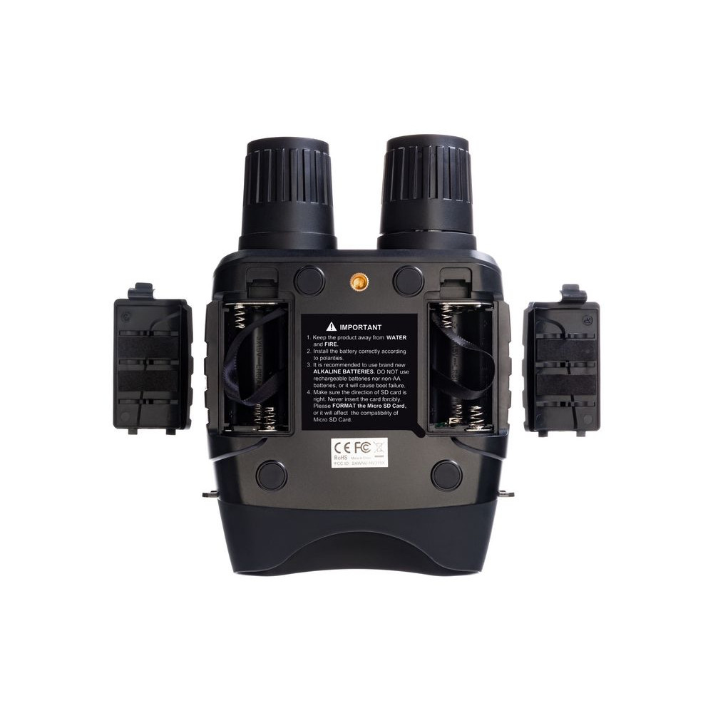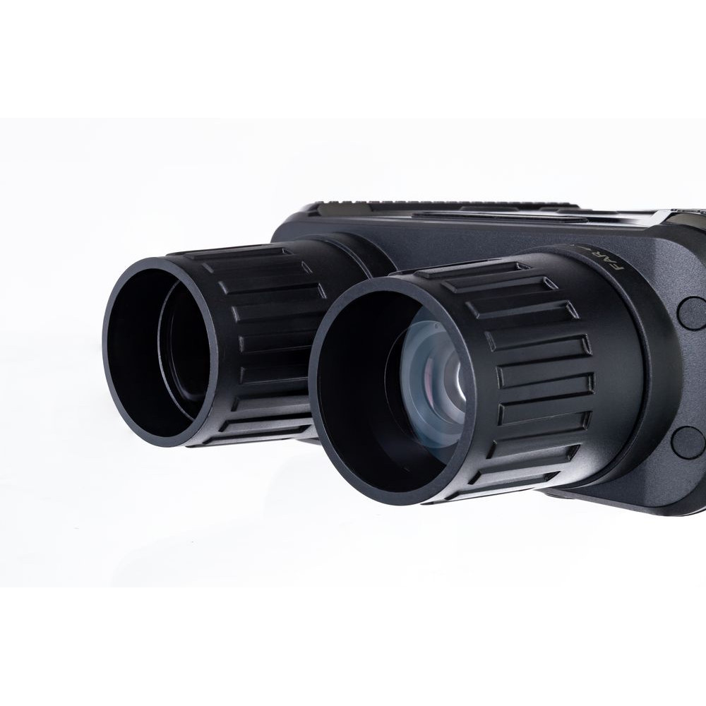 Корпус бинокля имеет эргономичную форму, поэтому удобно ложится в руку. Прибор также не боится брызг воды. Для управления используются всего шесть кнопок, поэтому работать с биноклем очень легко — все нужное находится под рукой. Одного комплекта батареек хватает на 4–10 часов непрерывной работы (длительность работы зависит от интенсивности использования ИК-подсветки).Бинокль с функцией прибора ночного видения. В комплект входит чехол из полиэстера.