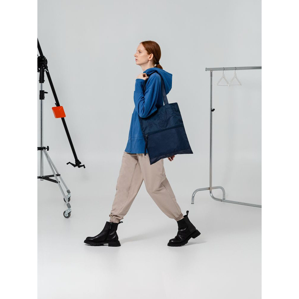 Цвет Outer Space лег в основу коллекции сумок Triangel, позволяя создать модное монохромное сочетание с изделиями Manevr темно-синего цвета. Изделия изготовлены из шелковистого полиэстера, в отделке использована лазерная перфорация паттерна.