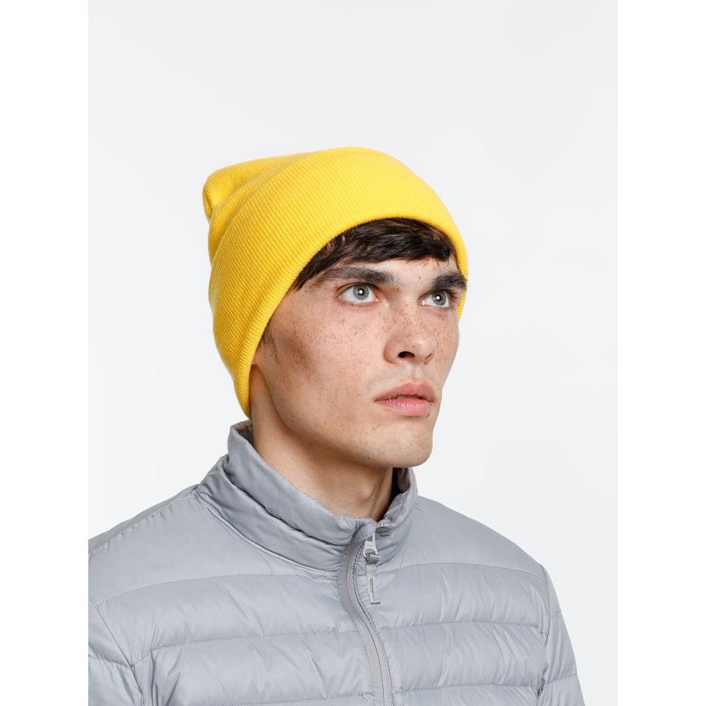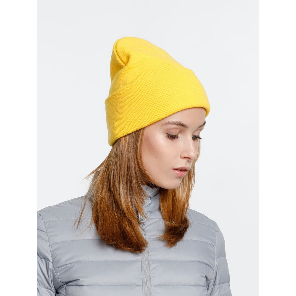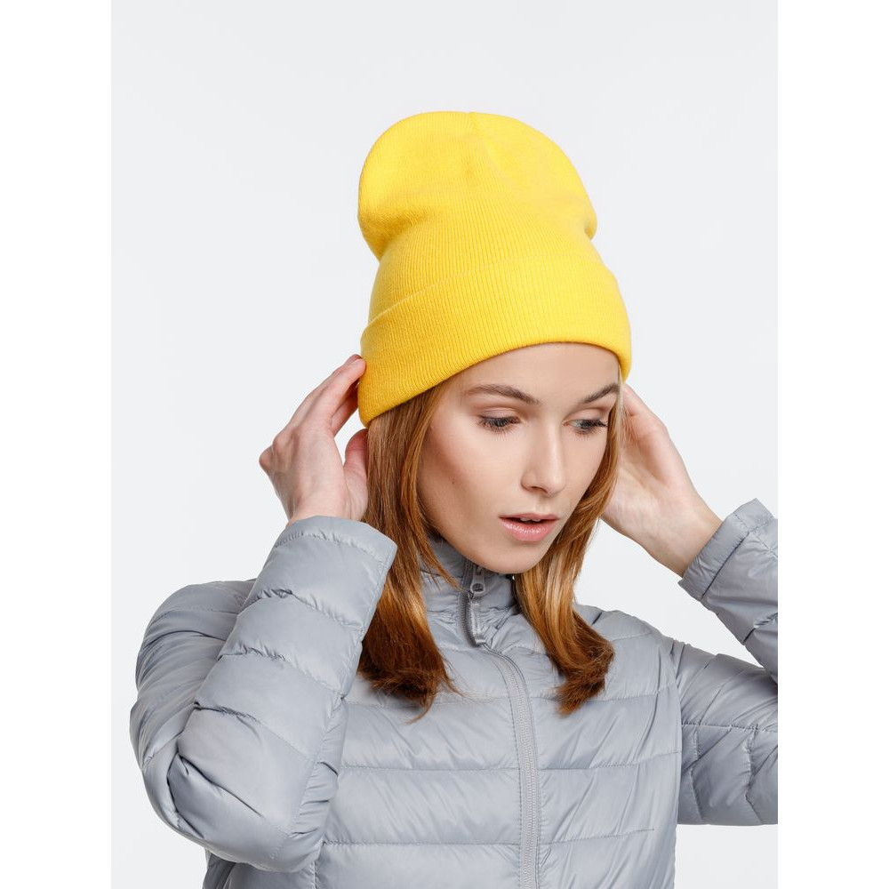 Двухслойная шапка из акриловой пряжи с регулируемым отворотом 7–10 см.