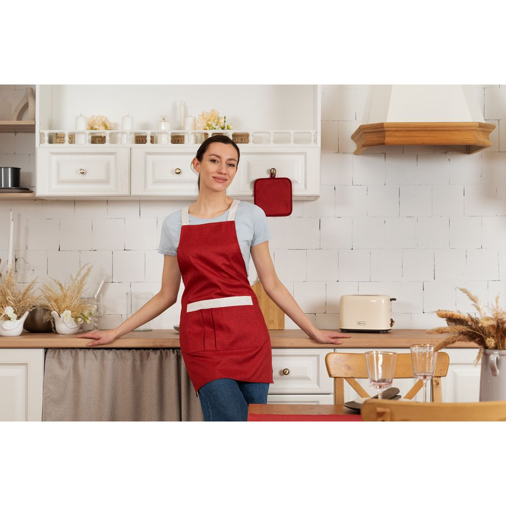 • Фартук с контрастной отделкой и перекрестными регулируемыми лямками