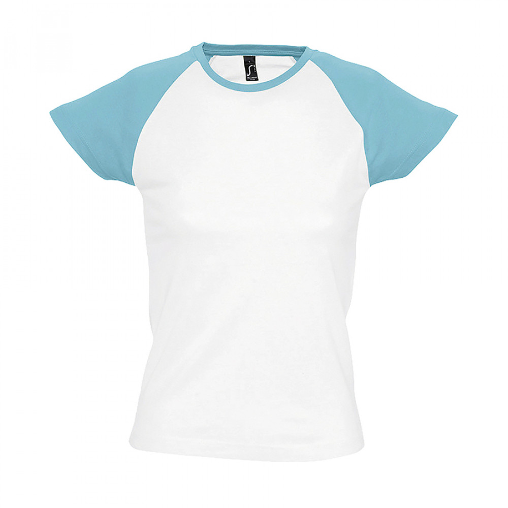 Двухцветная женская футболка MILKY является парой к мужской футболке FUNKY. Благодаря констрастирующим цветным коротким рукавам реглан она выглядит оригинально и стильно, а отсутствие боковых швов обеспечивает широкое поле для печати любого креатива.