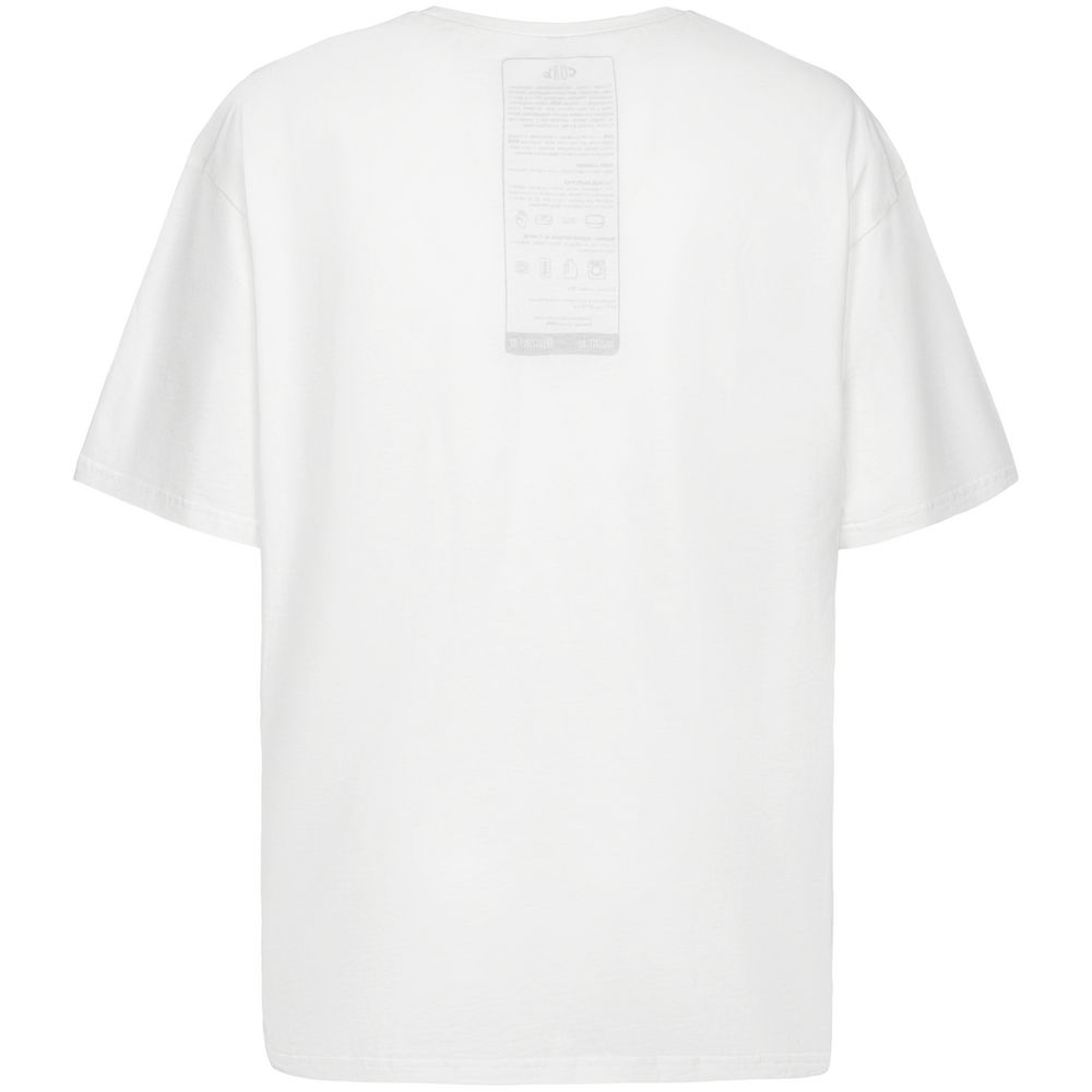 Принт с информацией о бренде и инструкцией по уходу за изделием на изнаночной стороне футболки.