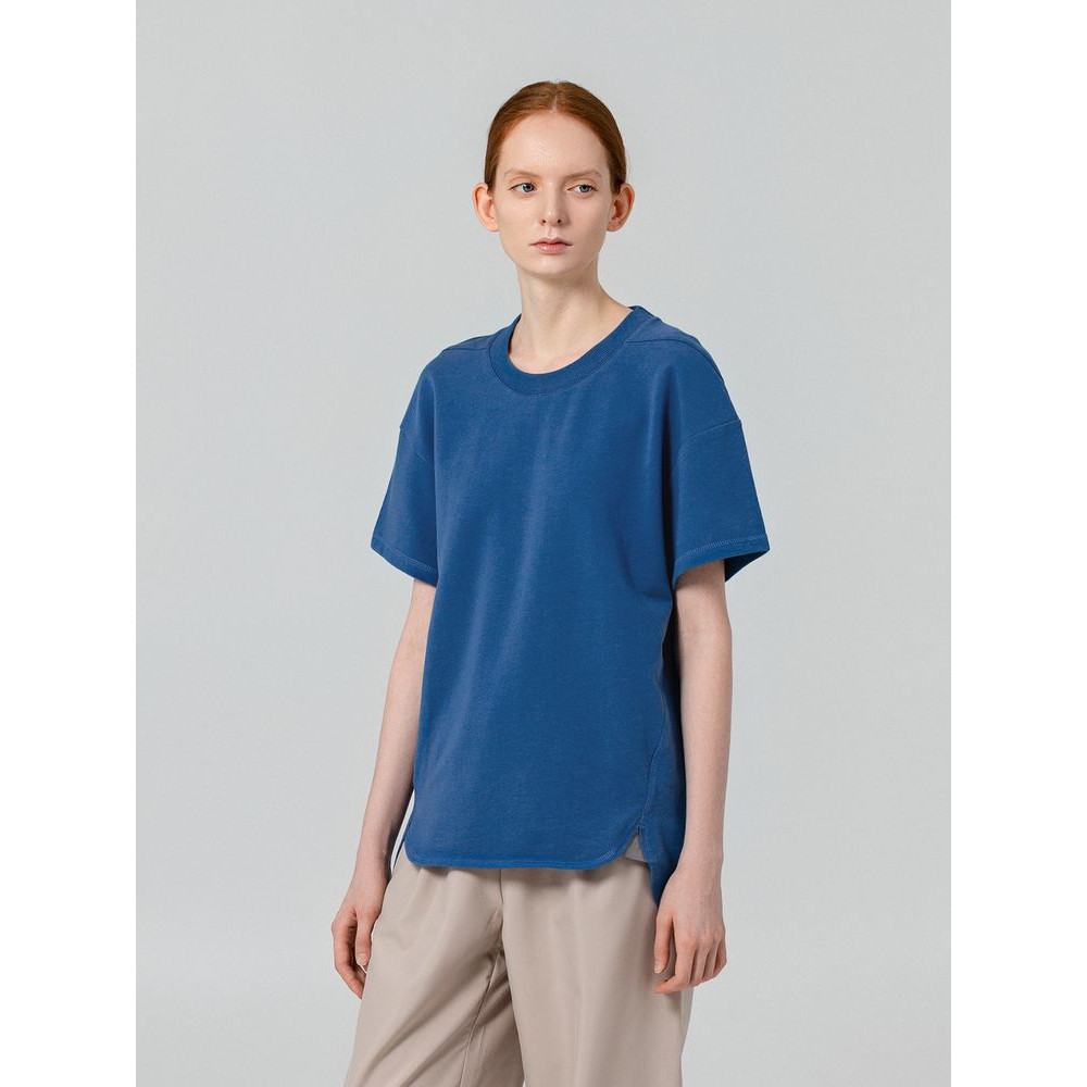 Футболка унисекс свободного кроя со спущенным плечом и смещенными плечевыми и боковыми швами.