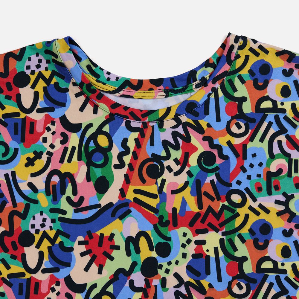 Одежда с печатью рисунка в крое, известной также как all-over или seamless print, предполагает нанесение стойкого полноцветного рисунка (паттерна или узора, не требующего совмещения) на ткань методом сублимации еще до этапа пошива. Такой способ брендирования отличается от печати на готовой одежде и имеет свои уникальные преимущества:
