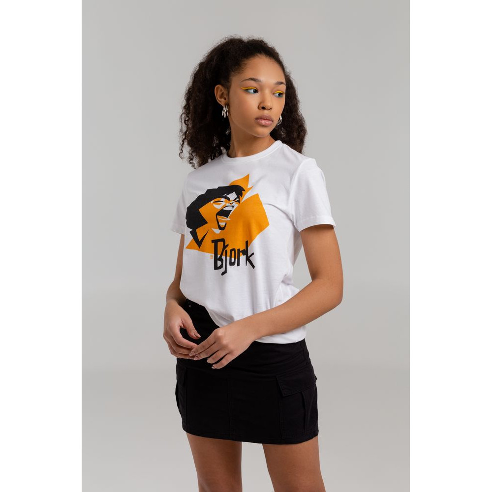 Женская футболка с уплотненными швами на плечах и двойным швом с эластаном. Четырехслойная резинка на воротнике предохраняет его от растяжения.