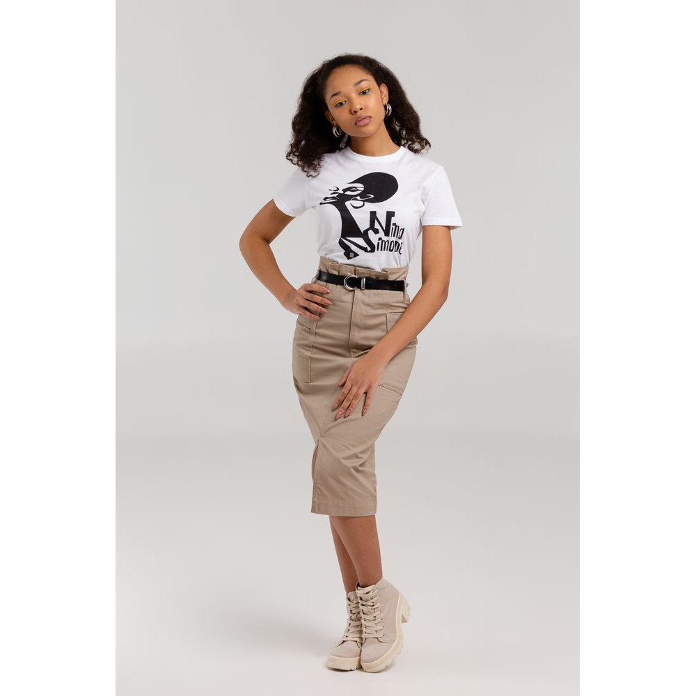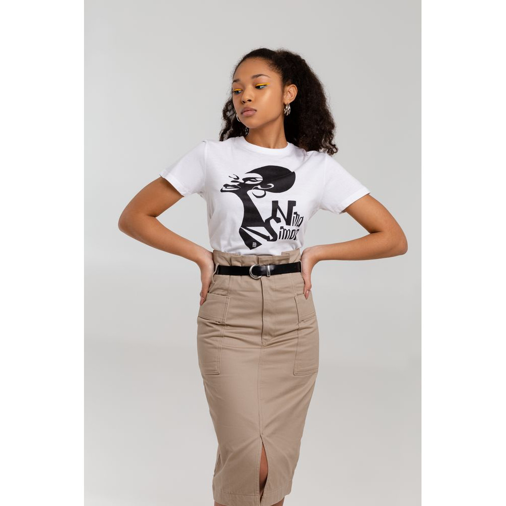 Женская футболка с уплотненными швами на плечах и двойным швом с эластаном. Четырехслойная резинка на воротнике предохраняет его от растяжения.