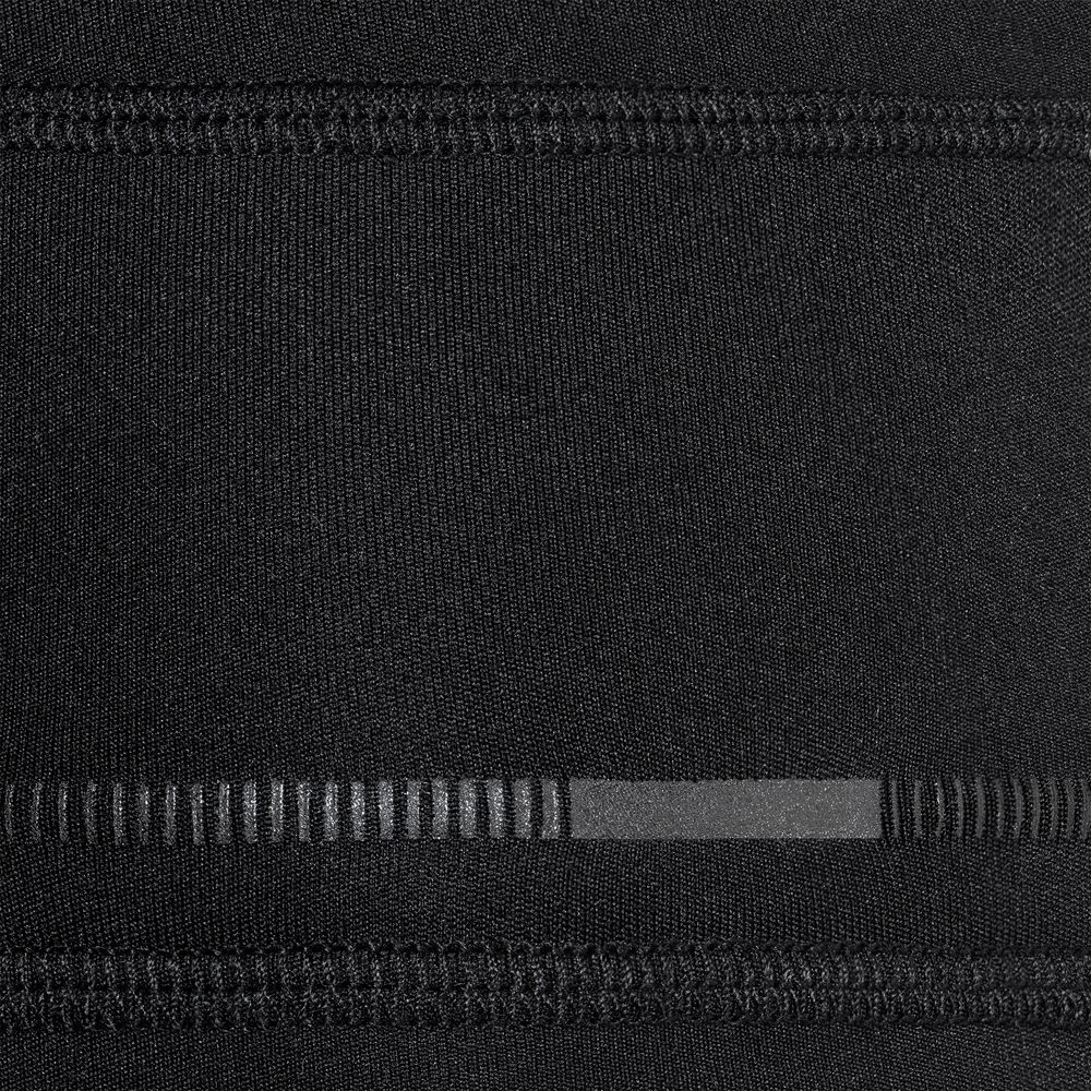Повязка выполнена в черном цвете, но имеет светоотражающую полосу вдоль края, что улучшает видимость спортсмена в условиях плохой освещенности.