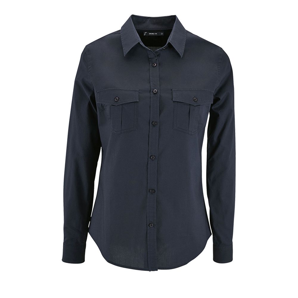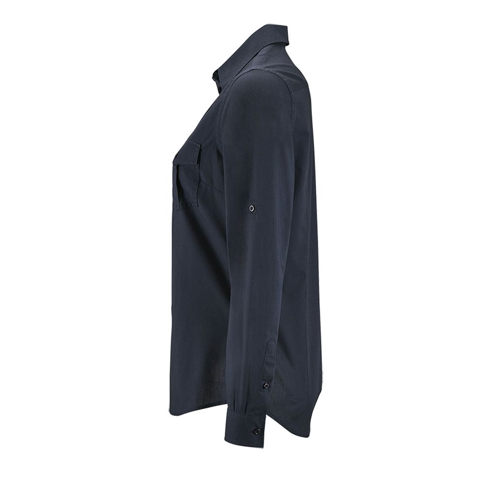 Рубашка приталенного кроя в стиле «сафари» с планкой на 7 пуговиц в тон.