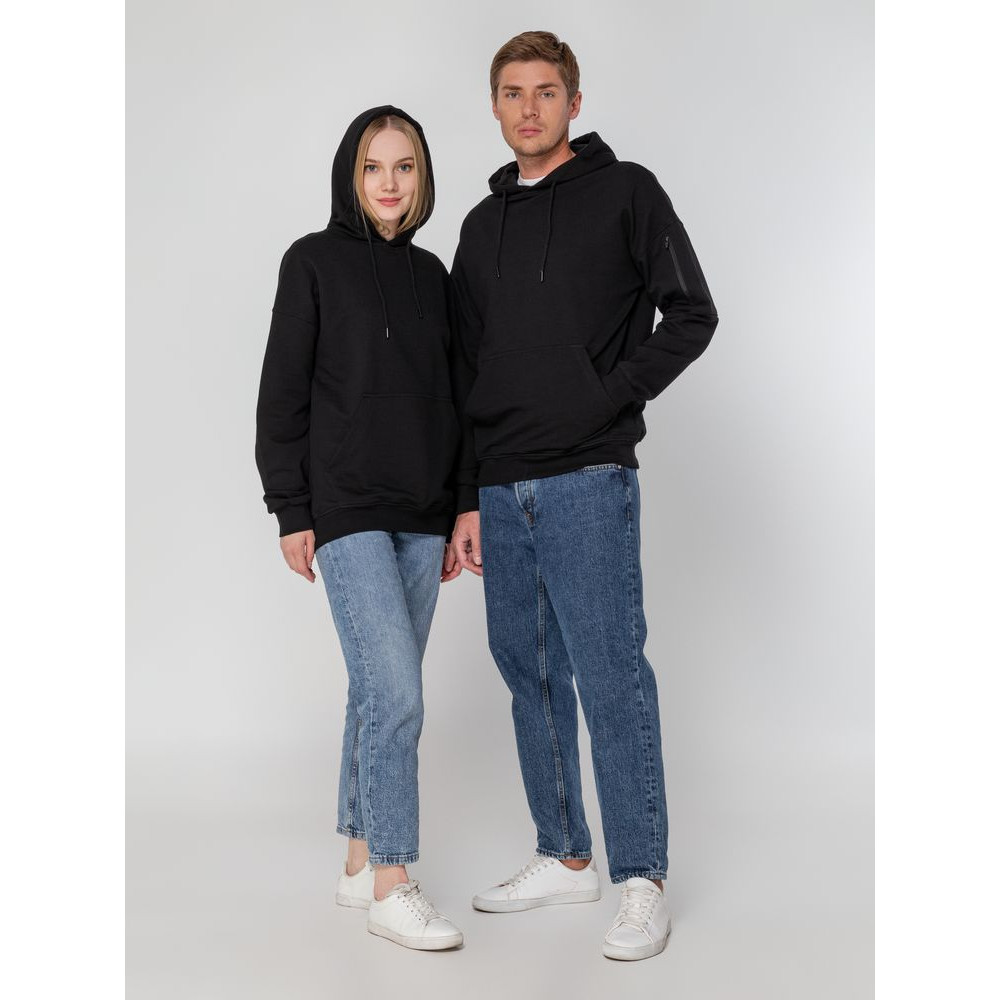 Худи унисекс свободной посадки со спущенным плечом из трикотажного полотна пике.