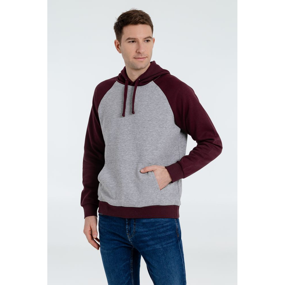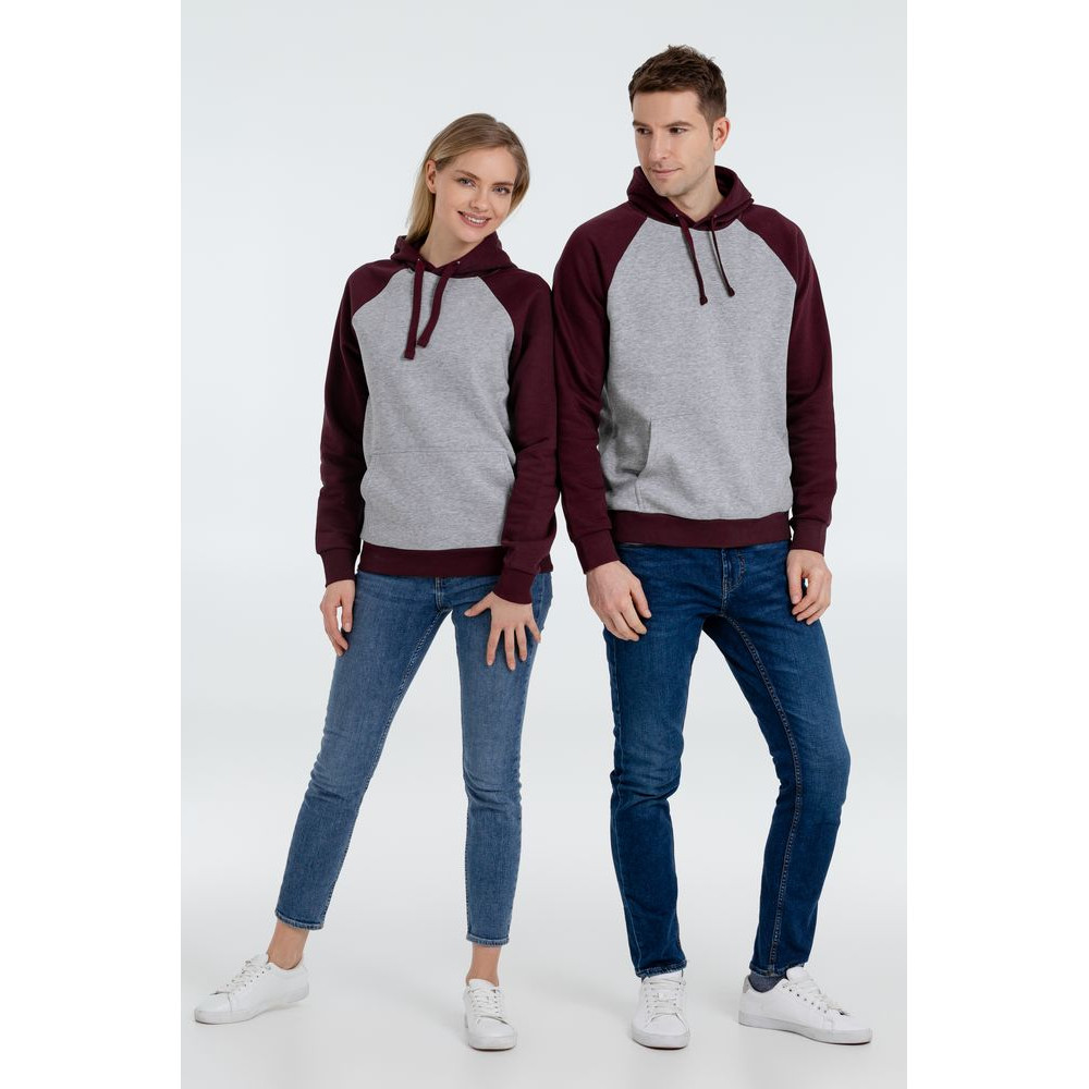 Двухцветная утепленная толстовка унисекс с рукавами реглан и карманом-кенгуру.