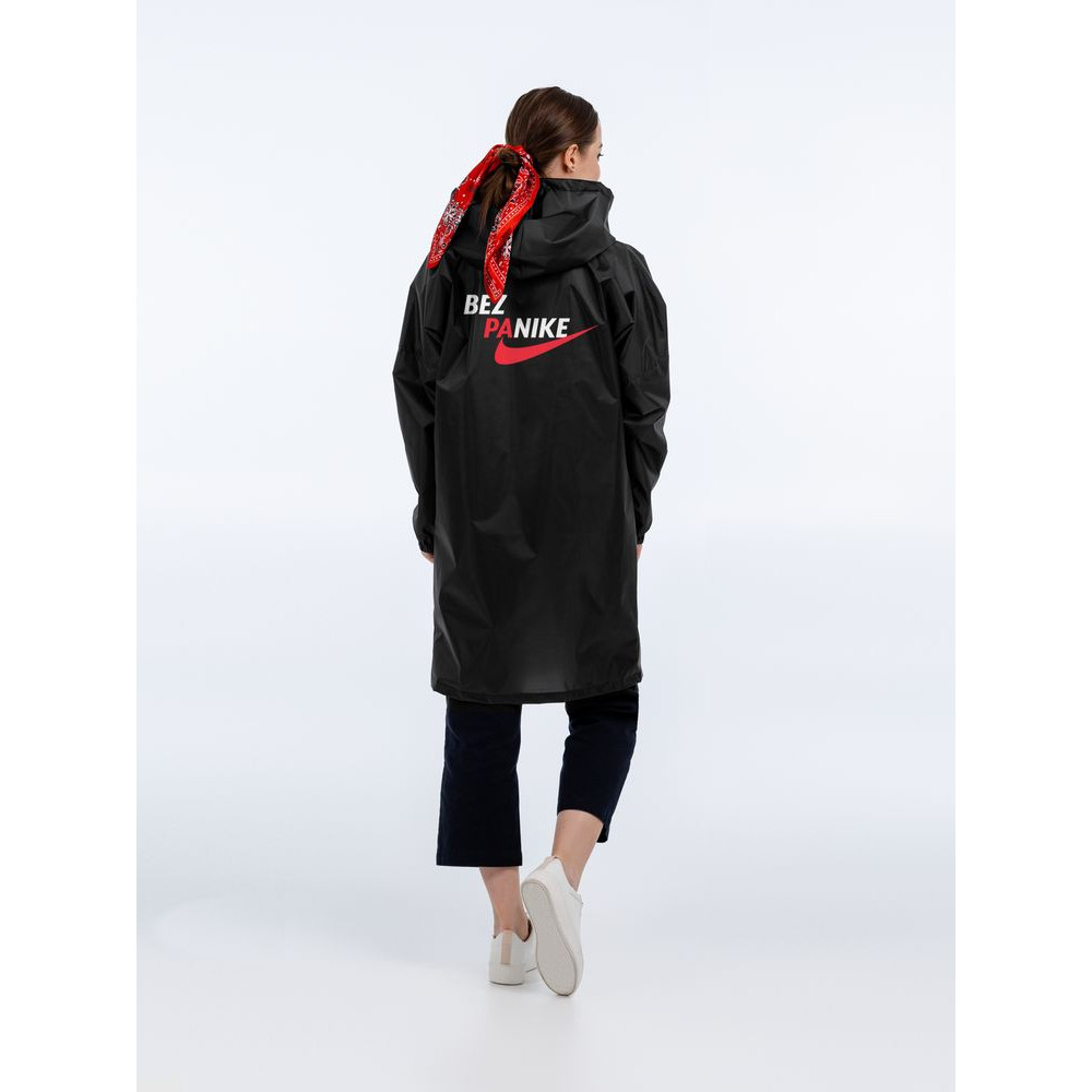 Коллекция «Антимерч» — это дружественный оммаж на известные бренды, которые способны обретать новые смыслы, если их немного подсолить иронией.Плащ-дождевик из ткани таффета на молнии с капюшоном. Складывается в мешочек — удобно брать с собой.