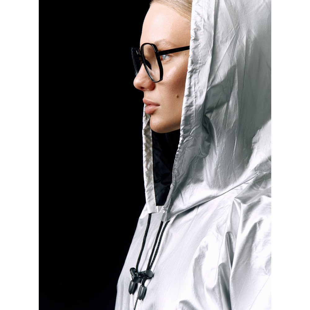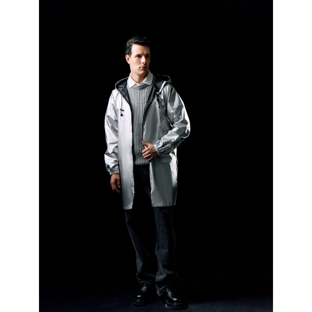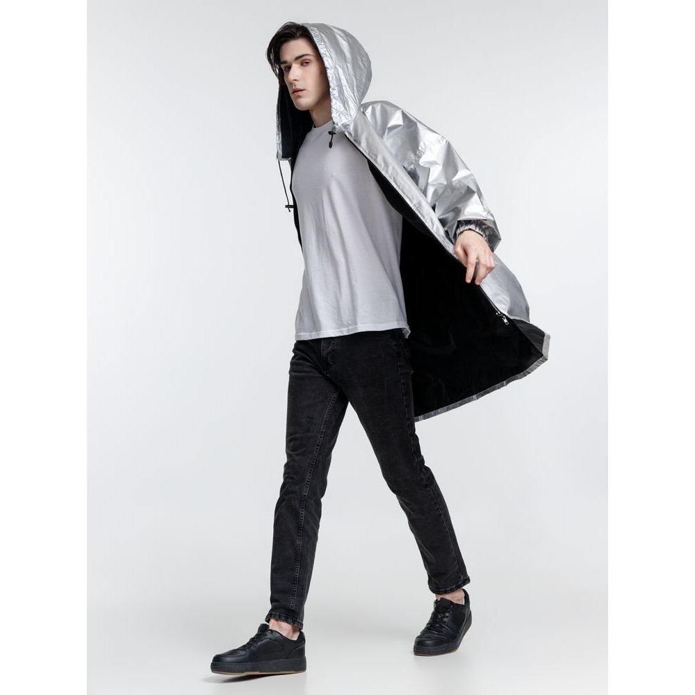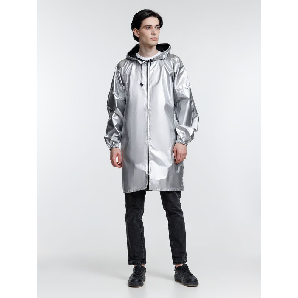Плащ-дождевик из ткани таффета на молнии с капюшоном. Складывается в мешочек — удобно брать с собой.
