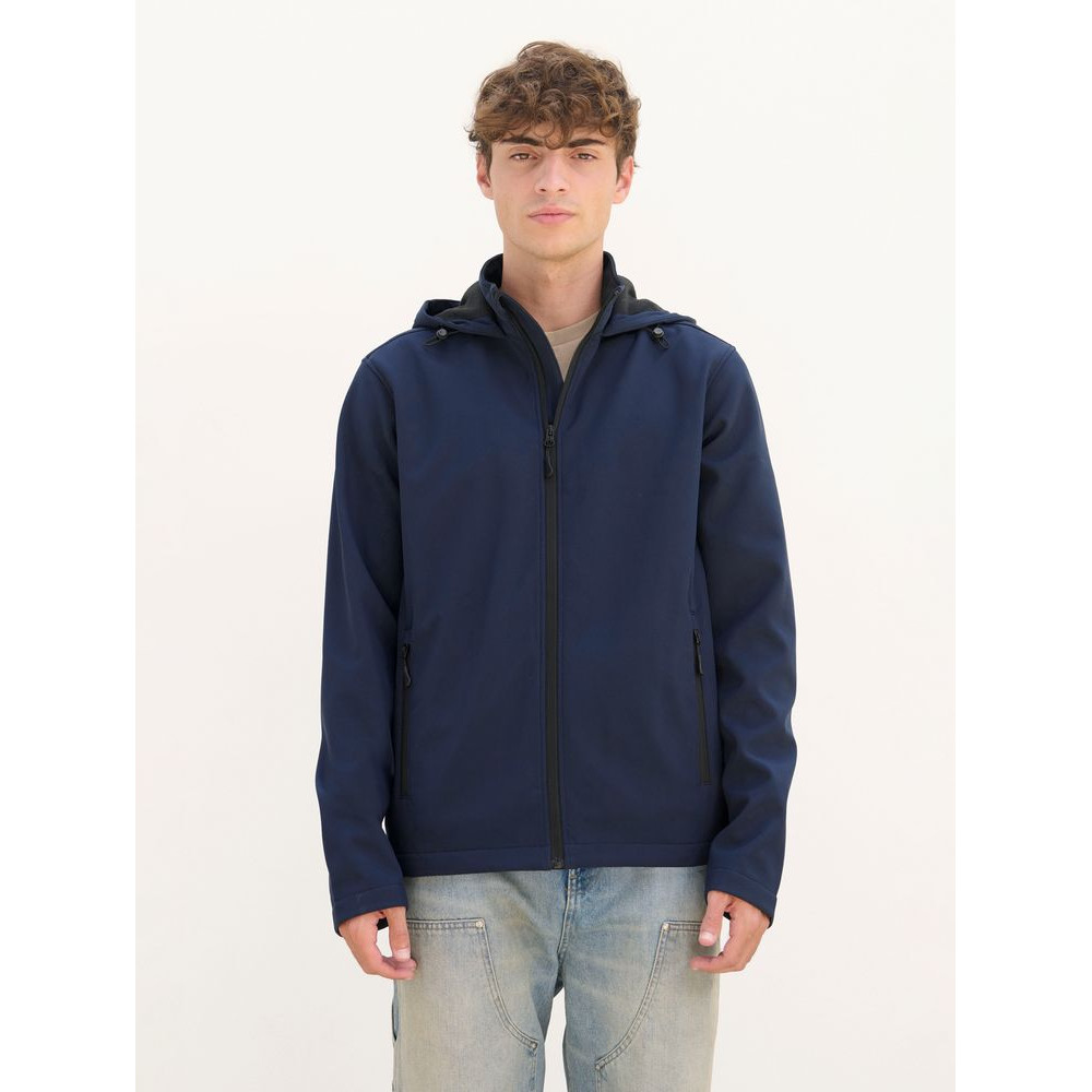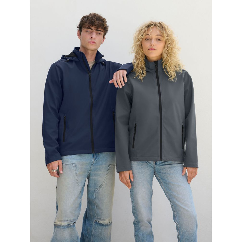 Мужская куртка софтшелл на молнии и с капюшоном.