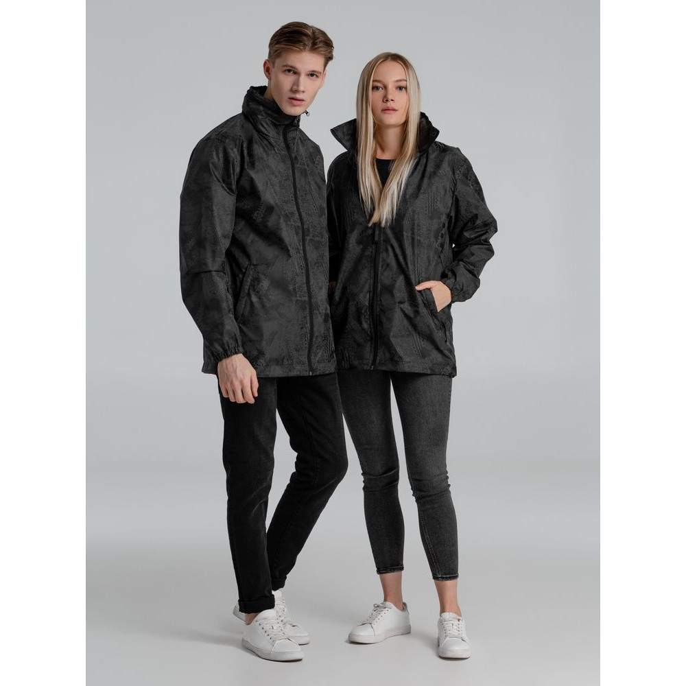 Ветровка с капюшоном из ткани с водоотталкивающей пропиткой и светоотражающим рисунком.