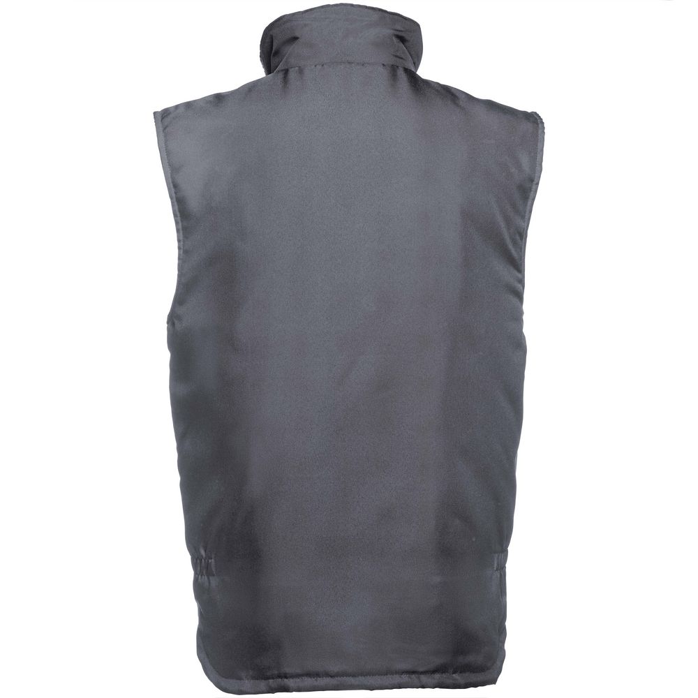 Мужской утепленный жилет с воротником-стойкой и удлиненной спинкой. Выполнен из ткани оксфорд с водоотталкивающим покрытием.