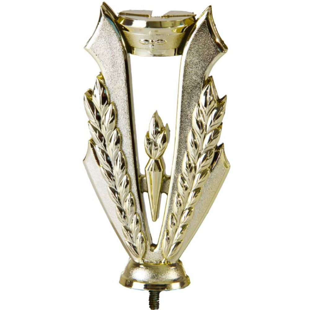 Цвет: золото, материал: пластик. Тема: факел. Фигурка выполнена в виде двух загнутых по краям элементов, обрамленных колосьями. Элементы покрыты шагренью. В середине полое пространство. По центру расположен декоративный элемент в виде горящего факела. Вверху фигурку завершает объёмный декоративный элемент виде перевёрнутой округлой пирамиды. Фигурка выполнена в золотом цвете, что придаёт ей роскоши и уникальности. Ниже - круглое основание, на котором имеются горизонтальные линии. Высота, см: 16.2 Вес, кг: 0.068. Фигурку возможно закрепить на цоколь, постамент или кубок.