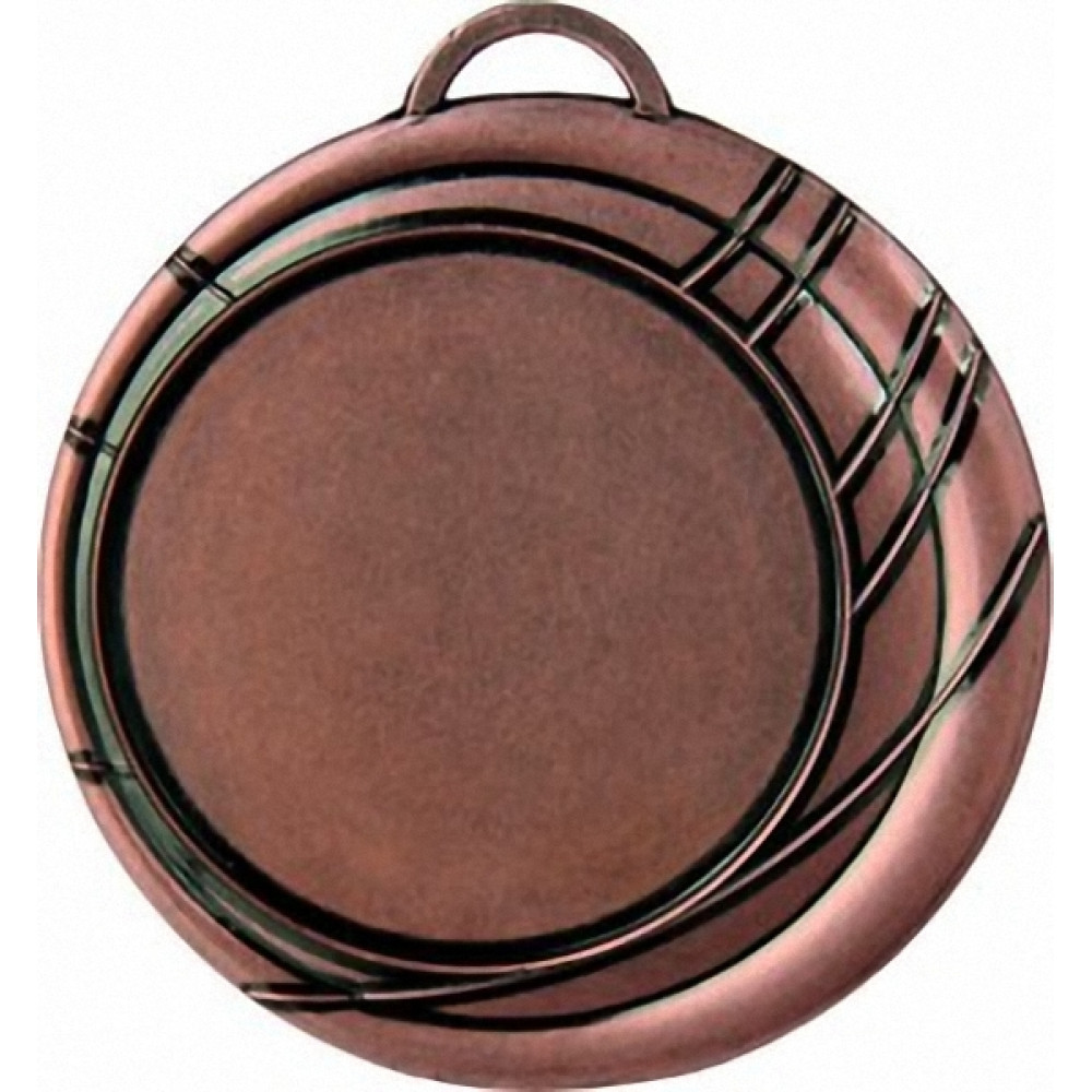 Медаль металлическая. Диаметр 70 мм, толщина 3 мм.¶Цвет медали, имитирующий золото/серебро/бронзу.¶Сверху расположено округлое ушко для крепления ленты.¶В центральной левой части аверса расположено место под вкладку, диаметр 50 мм¶Внешний вид медали состоит из трех наложенных друг на друга кругов разных диаметров - 70 мм, 60 мм и 50 мм. Последний круг диаметром 50 мм -и есть место под вкладыш. Круги соединены пересекающими их линиями (5 штук) разной длины.¶На медали нет никаких других изображений, нет рисунков, относящихся к конкретному виду спорта.