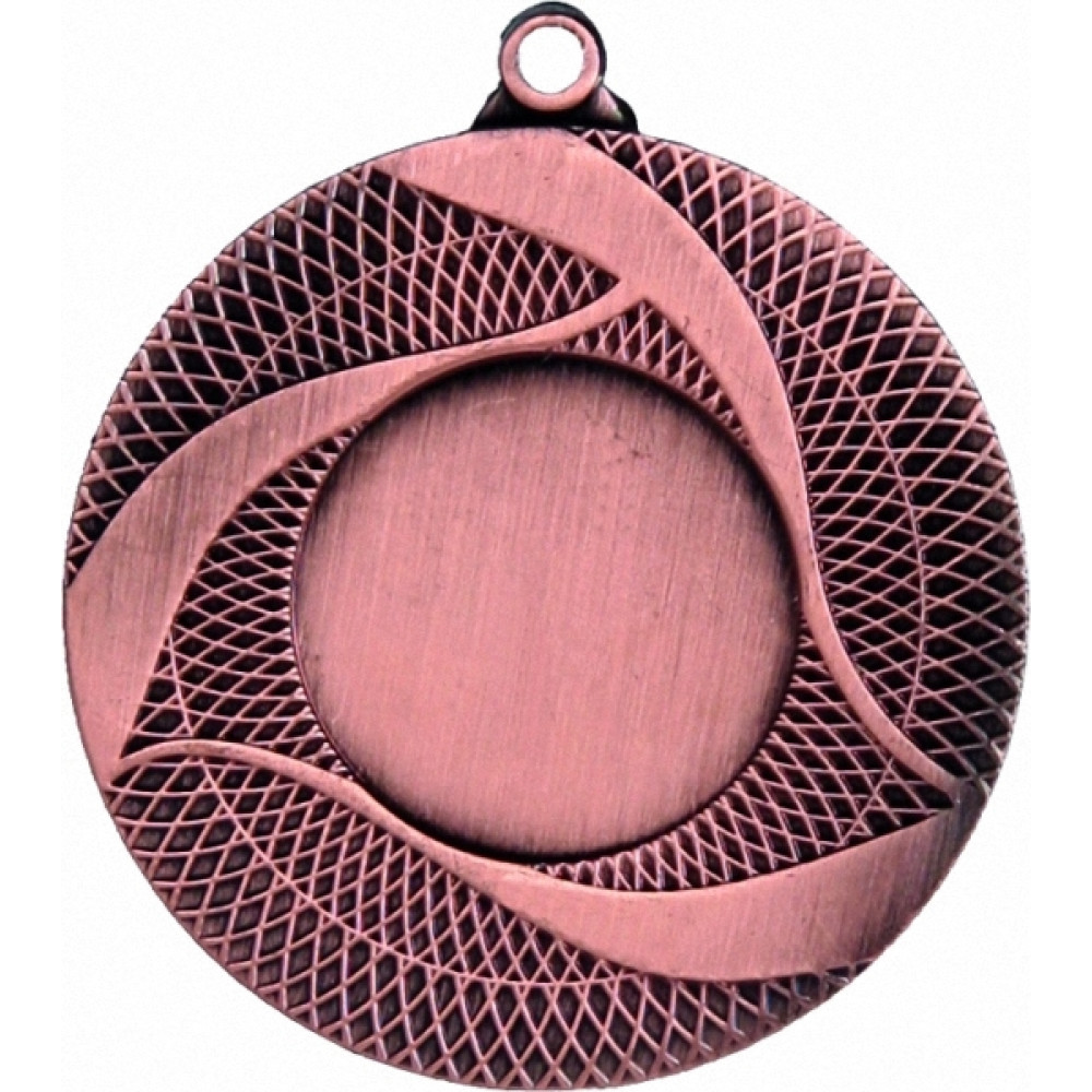 Медаль круглая металлическая. Диаметр 50 мм, толщина 3 мм.¶Цвет медали, имитирующий золото/серебро/бронзу.¶Сверху расположено круглое ушко для крепления ленты.¶По центру аверса медали расположено место под вкладку, диаметр 25 мм¶От места под вкладыш по всему диаметру отходят тонкие выпуклые полосы скругленные в разные стороны, образующие ромбы. Поверх ромбов расположена окружность в виде тонкой линии, диаметр 37 мм¶так же поверх узора расположены три выпуклых элемента в форме лены, сужающиеся с одной стороны и расширяющиеся с другой. Ленты огибают место под вкладыш.¶На медали нет никаких других изображений, нет рисунков, относящихся к конкретному виду спорта.