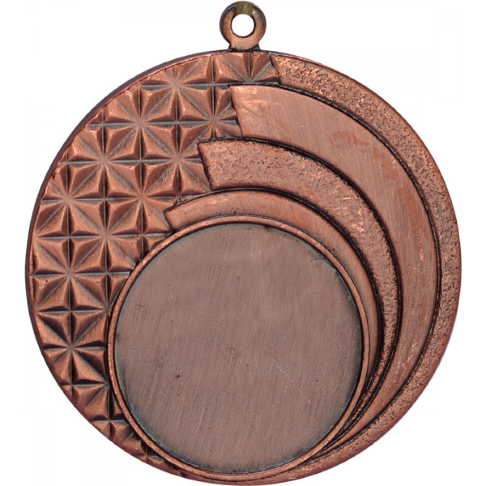 Медаль металлическая, круглой формы. Диаметр 45 мм, толщина 2,5 мм.¶Цвет медали, имитирующий золото/серебро/бронзу.¶Сверху расположено округлое ушко для крепления ленты.¶В центральной нижней части аверса медали расположено место под вставку, имеет тонкий кант, диаметр 25 мм.¶На аверсе медали снизу вверх изображены полосы, идущие по правой стороне окружности, углы на концах заостренные, всего 4 полосы. На левой части медали изображен орнамент в виде множества квадратов с пересекаемыми их линиями.¶На медали нет никаких других изображений.