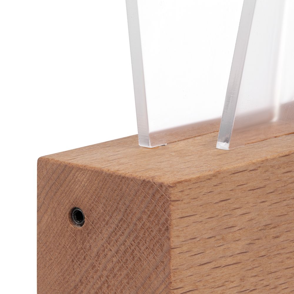 Стела Twin — это массивное основание из бука с гладкой фактурой и легкая прозрачная вставка из двух листов акрила. Идеальный баланс устойчивости и легкости, который важен не только для создания награды привлекательной формы, но и для достижения результата, который этой наградой будет отмечен.