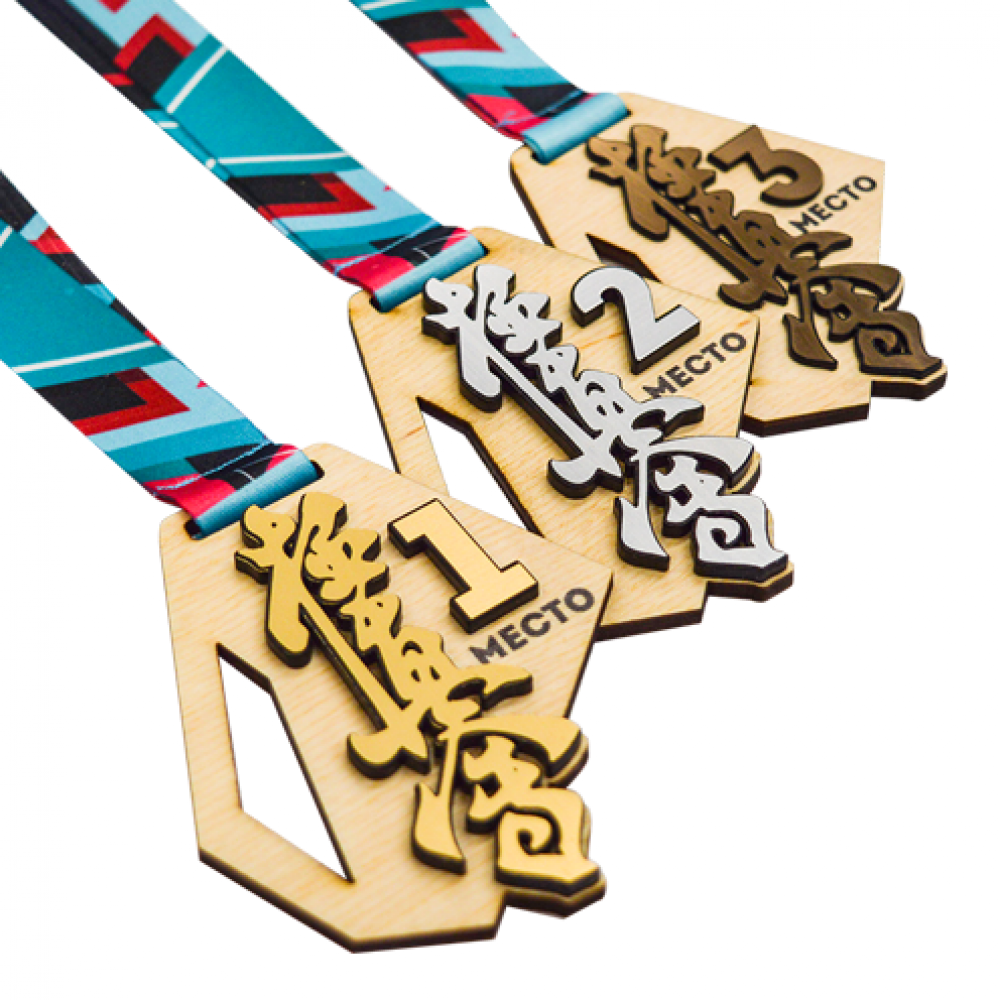 Параметры: Медаль из дерева с пластиком 2-слойная, с УФ-печатью