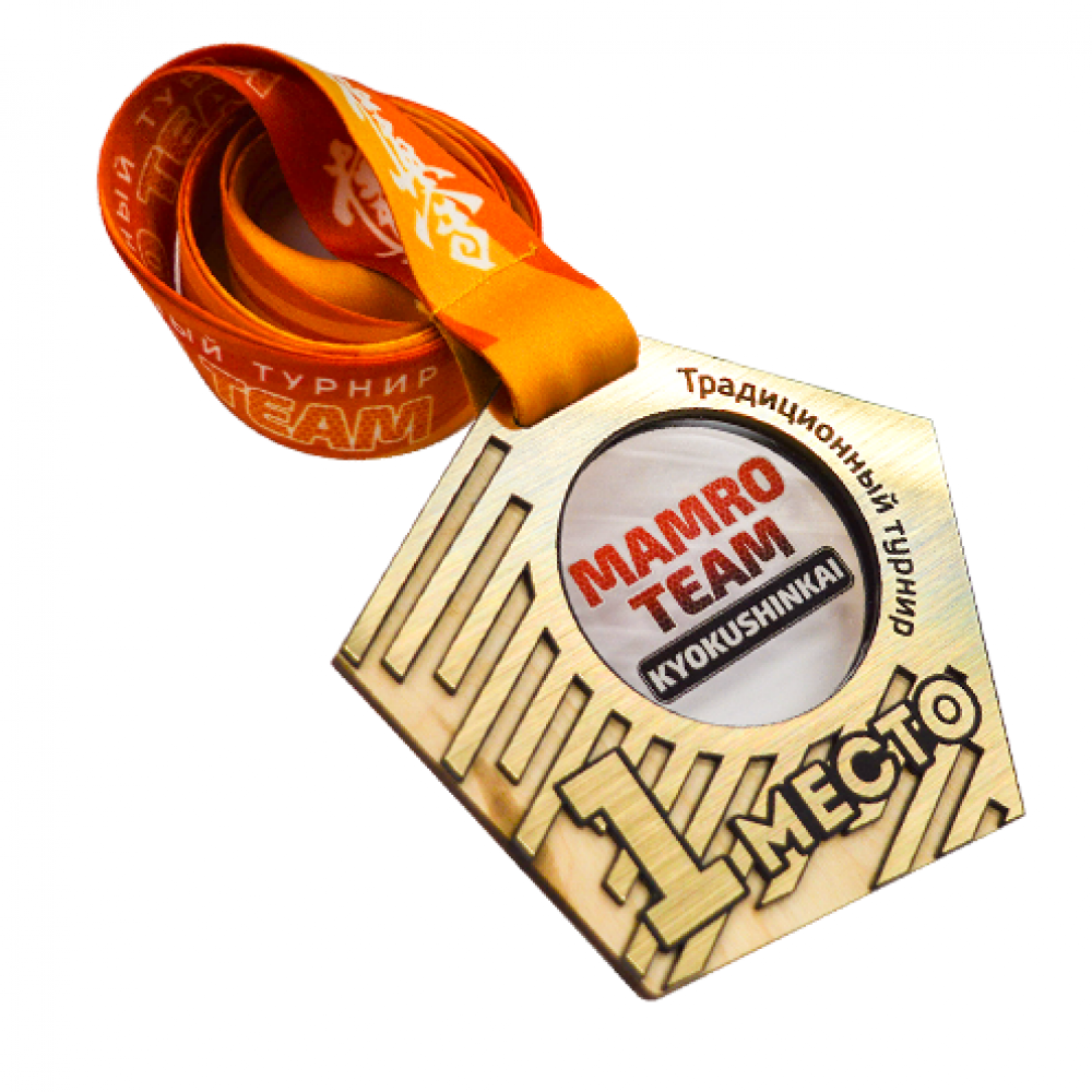 Параметры: Медаль из дерева с акрилом и пластиком 3-слойная, с УФ-печатью