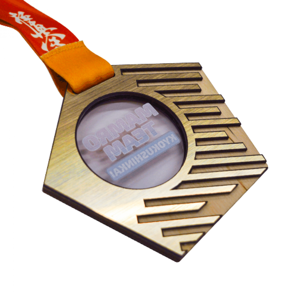 Медаль из дерева с акрилом и пластиком 3-слойная, с УФ-печатью
