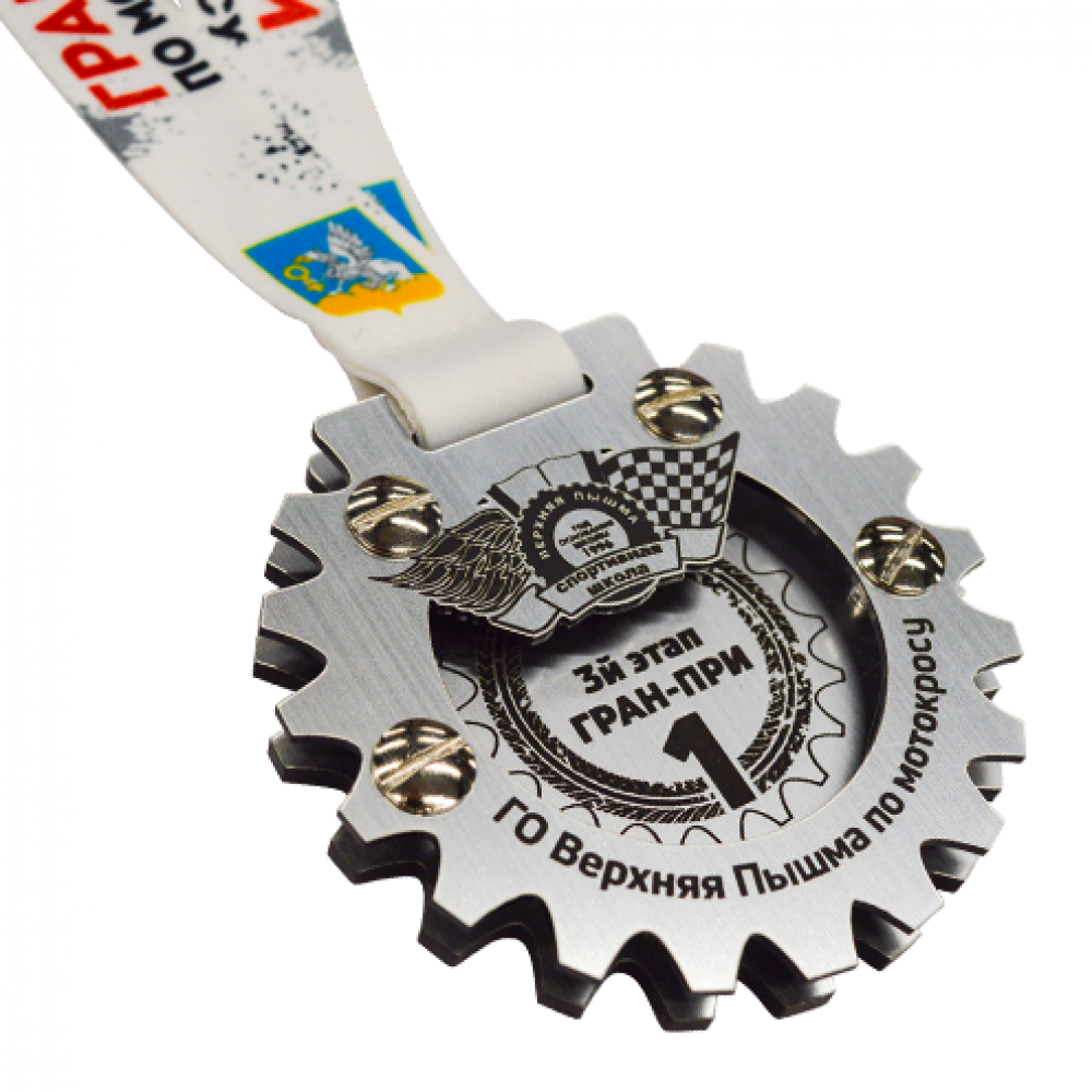 • Медаль 2-слойная из металла и пластика с гравировкой на дистанционных держателях