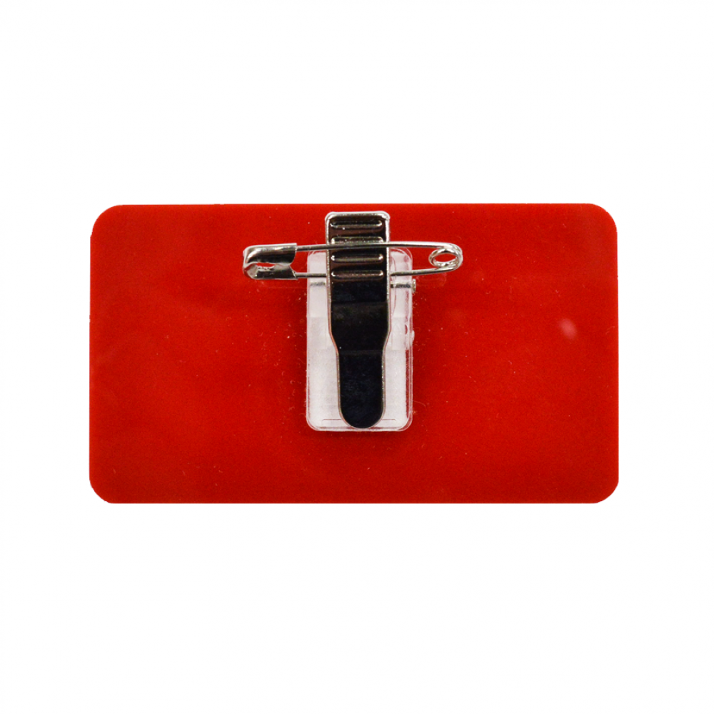 Материал бейджа – прозрачный или цветной акрил. Это практичный материал, стойкий к загрязнению и воде. Преимущество этого варианта – большой выбор цветов и оттенков акрила.