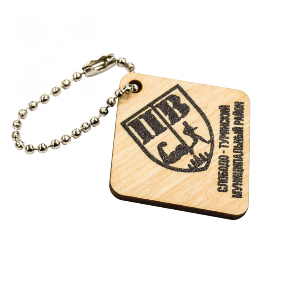 Описание: Брелок изготовлен из дерева с использованием технологий лазерной резки и УФ-печати. Предлагается в различных размерах, например, 3х4 см, 4х5 см и 5х7 см. УФ-печать позволяет нанести на одну сторону брелока цветное изображение или текст с высокой степенью детализации и яркости цветов.