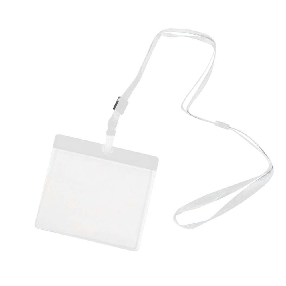 • Ланъярд с держателем для бейджа MAES, белый; 11,2х0,5 см; полиэстер, пластик; тампопечать, шелкограф