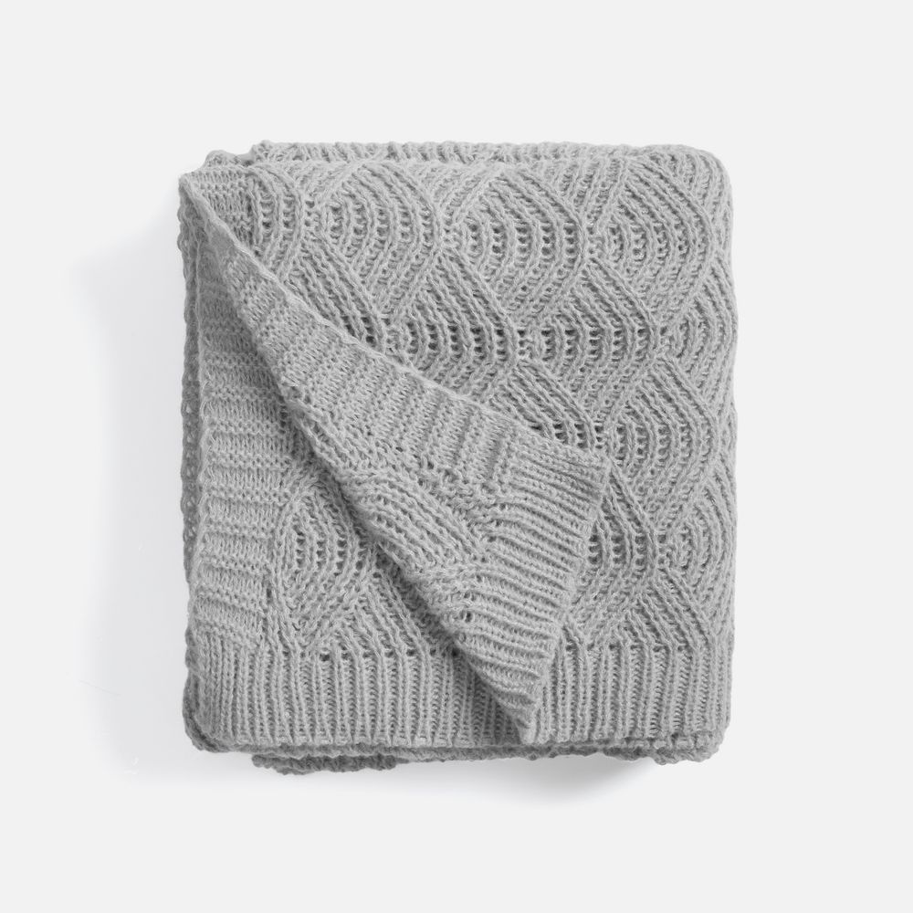 Изысканный плед с узором из закругленных ромбов станет настоящим украшением пространства. Воздушный, словно полупрозрачный, узор напоминает морские ракушки, навевая мысли о приятном курортном отдыхе и полной безмятежности.