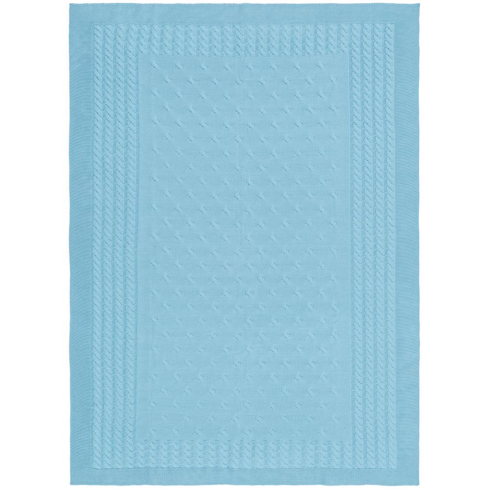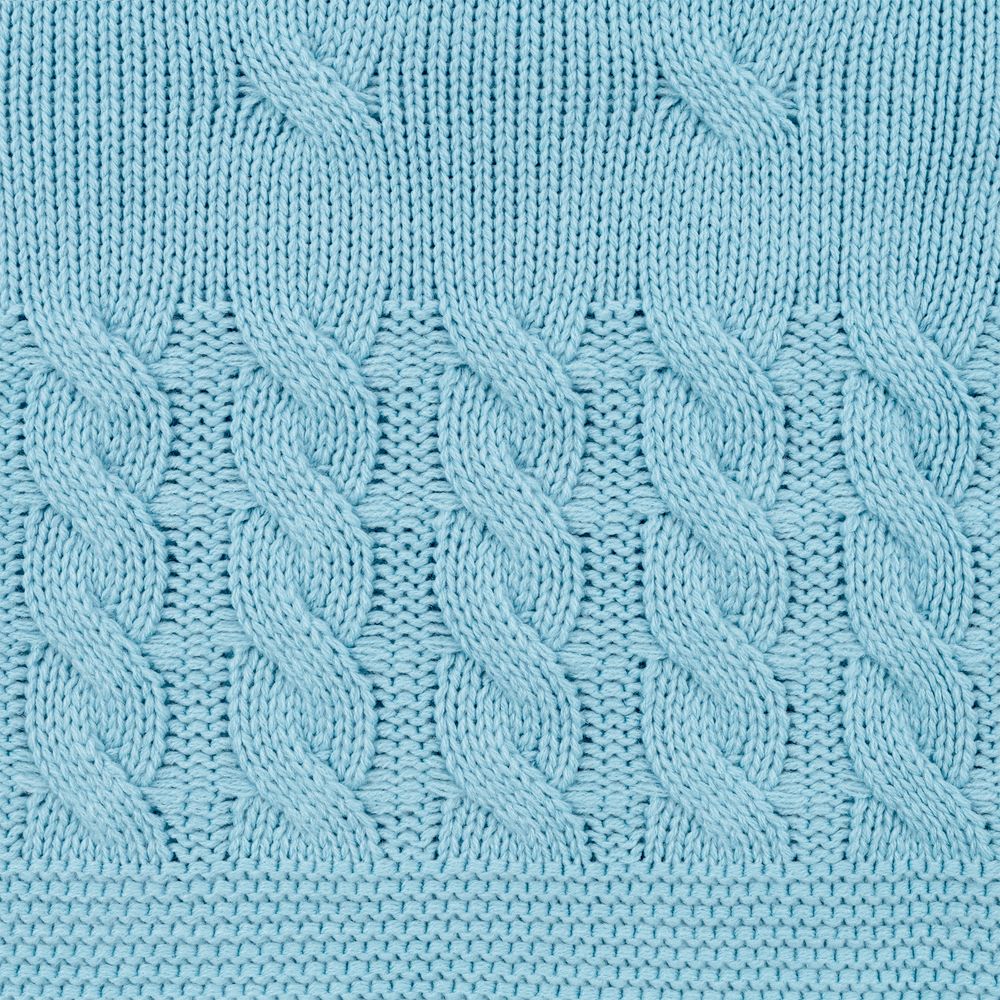 Модель: однотонный плед с фактурной вязкой, которая позволяет сделать его воздушным и объемным. Чередуя различные типы петель на гладком полотне, можно вывязать любую графику — логотип, текст, товарный знак.