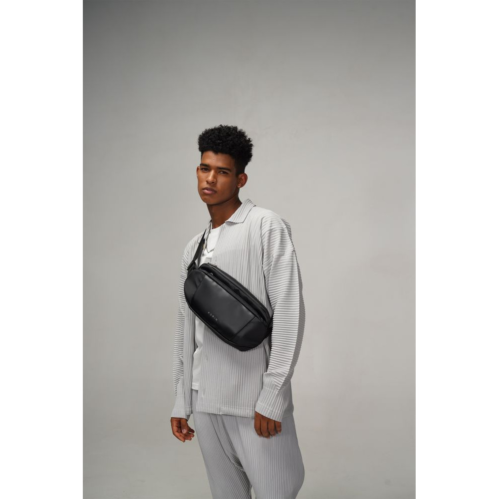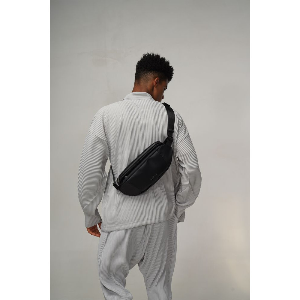 Модная эргономичная наплечная сумка FlipSling cделана из инновационного водоотталкивающего материала, устойчивого к порезам, трению и другим механическим воздействиям, в комбинации с искусственной кожей.