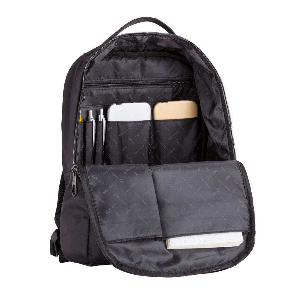 - Одно основное отделение с карманом для планшета, карманом на молнии и несколькими карманами для гаджетов, письменных принадлежностей и других мелочей