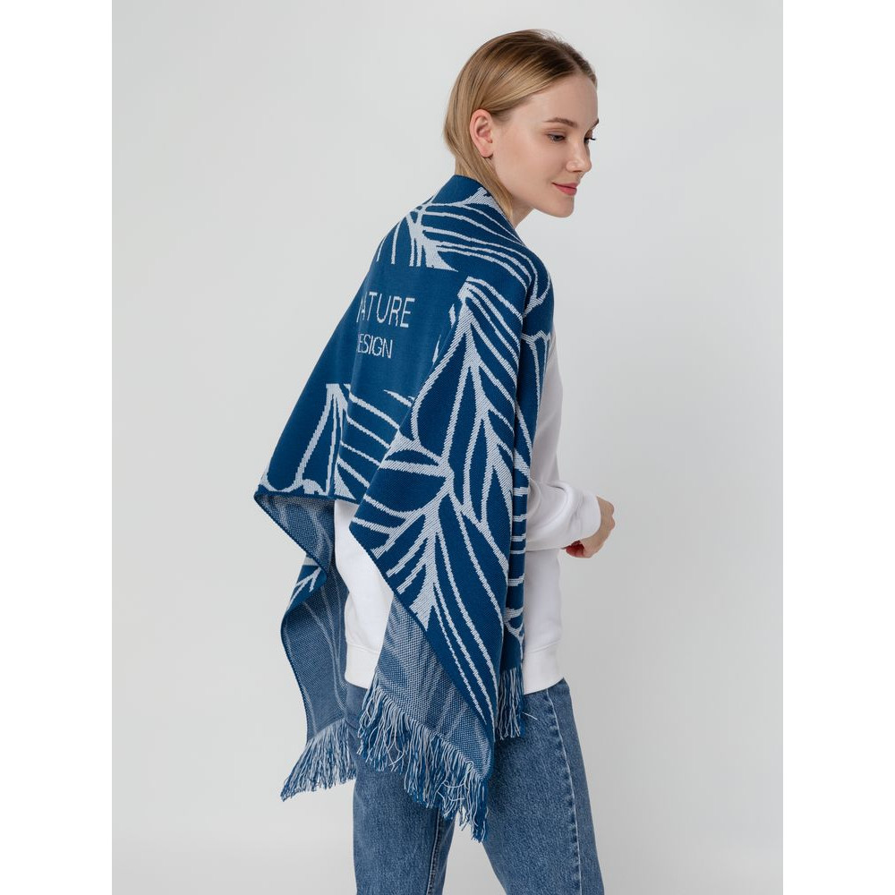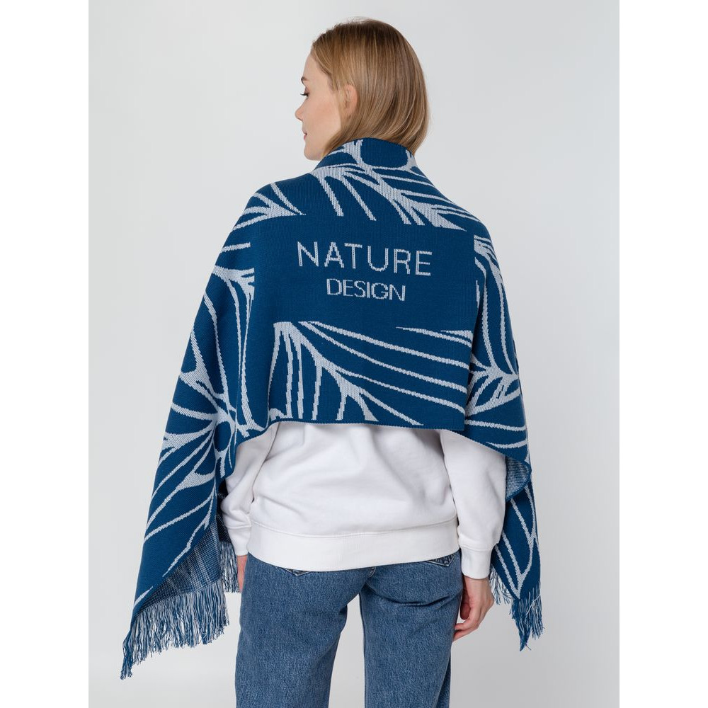 Палантин с пестрой бахромой с вывязанным логотипом и индивидуальным рисунком в фирменной цветовой гамме.