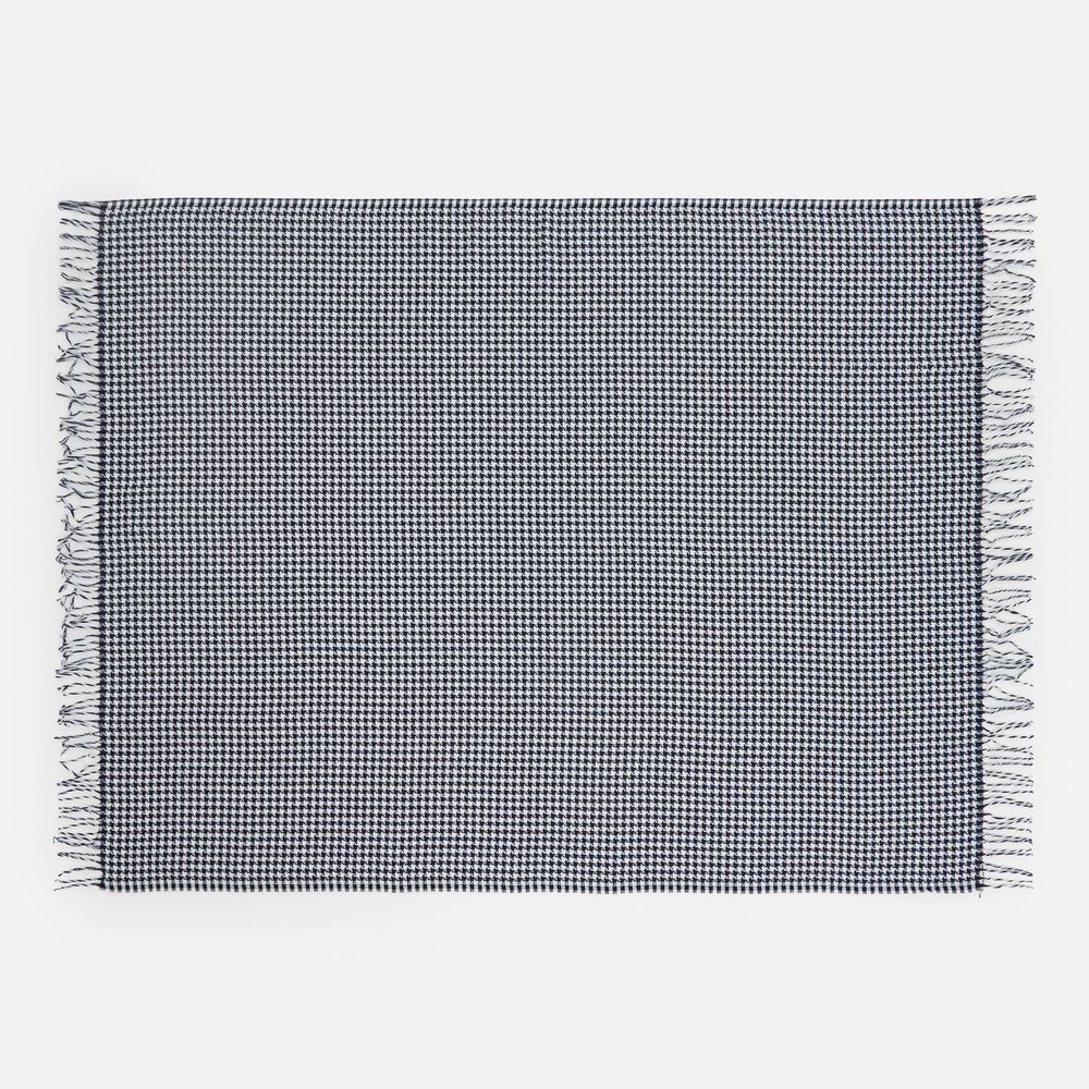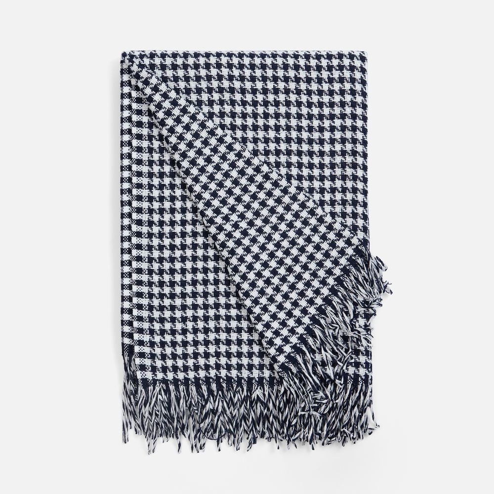 Графичный узор «гусиная лапка» (или «pied-de-poule») превращает изделие в изысканный интерьерный акцент, а бахрома добавляет ему элегантности и завершенности. Это воплощение безупречного вкуса и дань вневременной классике.