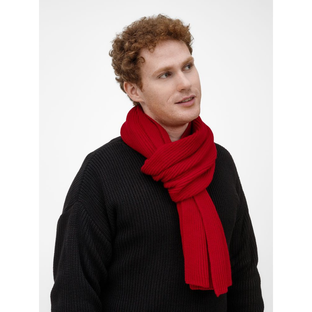 Широкий шарф из мягкой полушерстяной пряжи с выразительной фактурной вязкой создает современный запоминающийся образ.