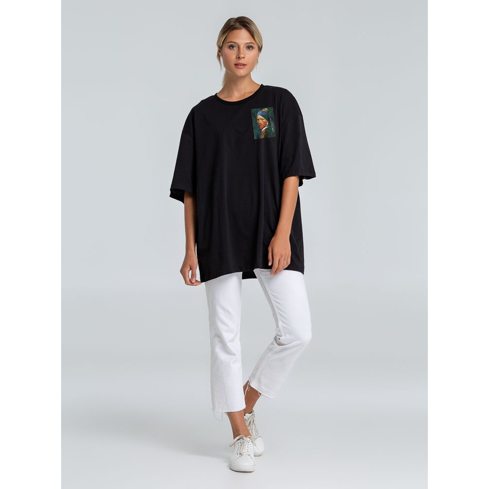 Футболка оверсайз «Мужчина с жемчужной сережкой», черная