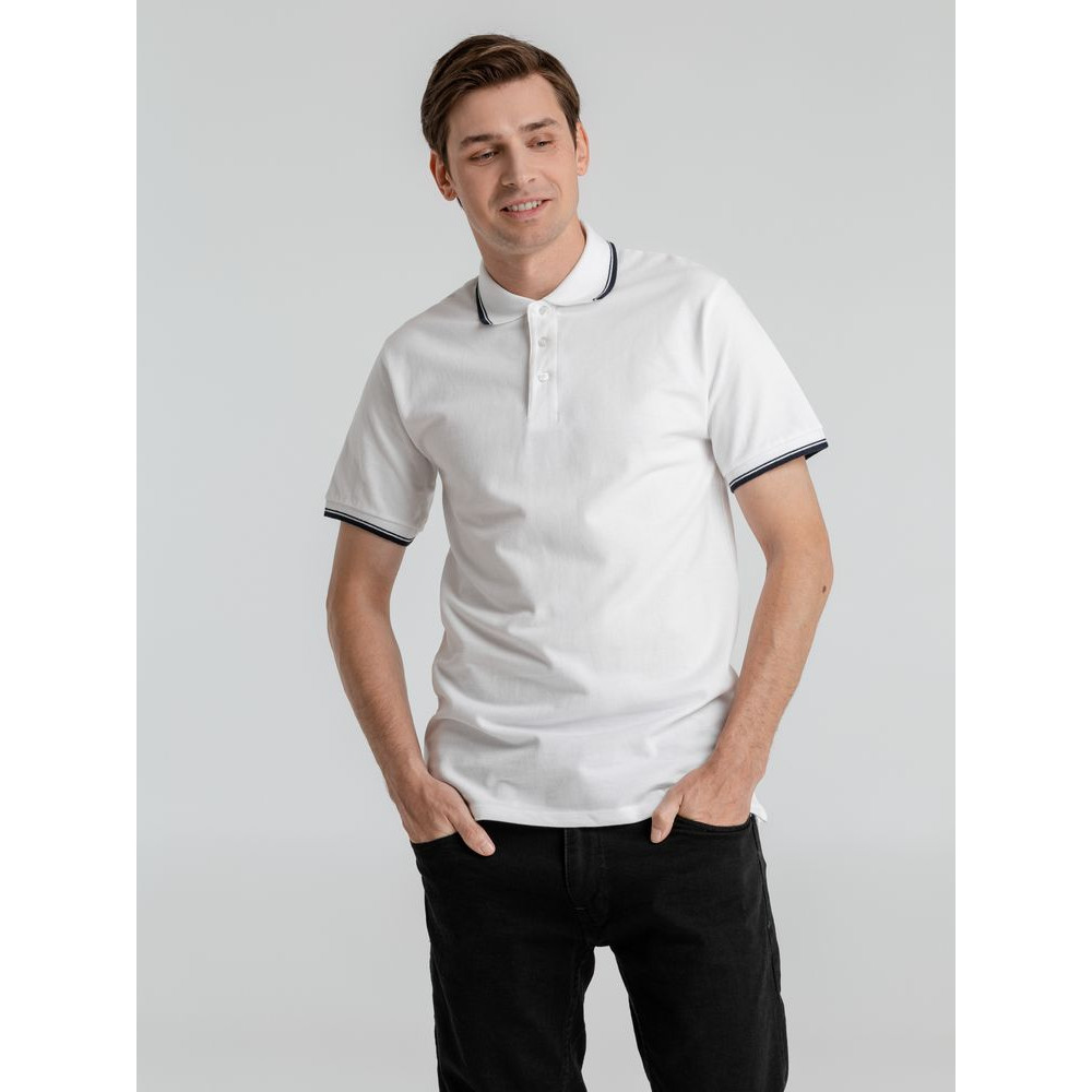 Рубашка поло мужская с контрастной отделкой Practice 270, белый/темно-синий