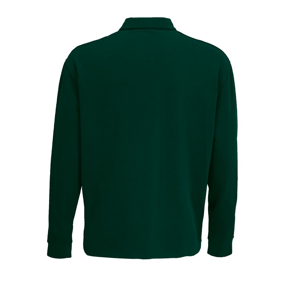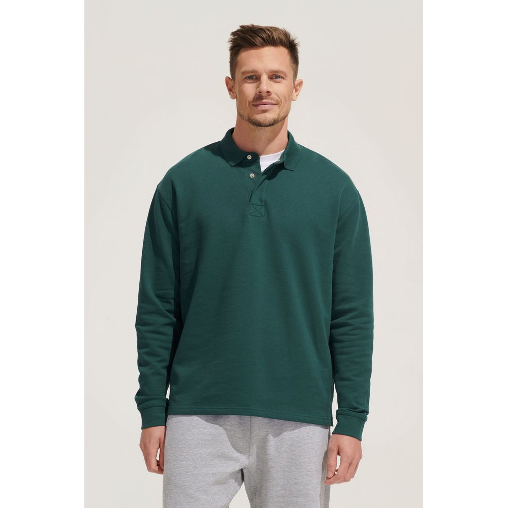 Рубашка поло из футера с длинным рукавом и спущенным плечом.